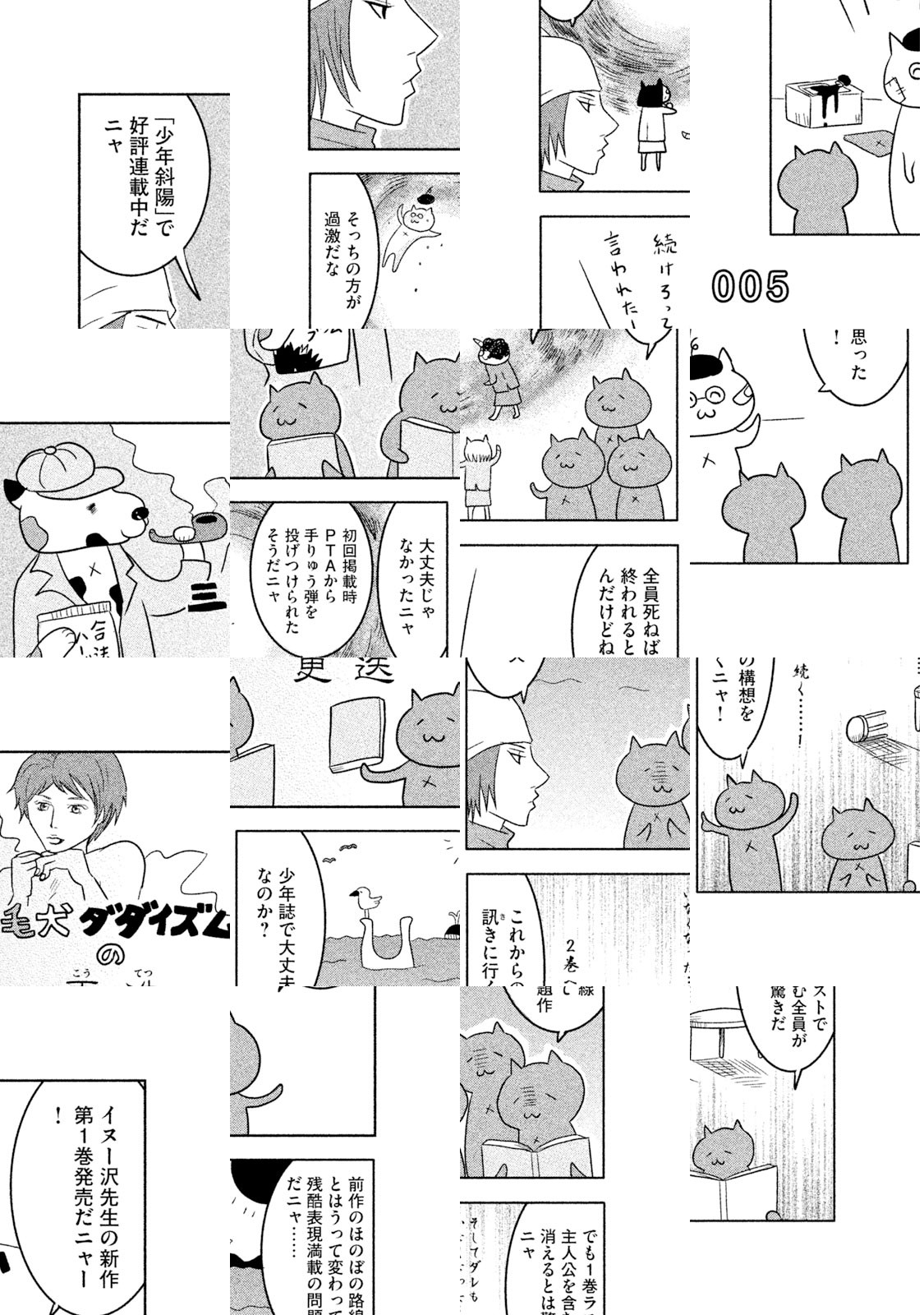 日本のどこかの道ばたにロシアンブルーがすてられていました。出会いをまちわびるうち、捨て猫は三びきにふえていました。だれも彼らをひろってくれません。ところが神様は猫たちを決してみすてませんでした。猫耳の帽子をかぶった無気力で無表情でブラブラしている若者が、三びきの新しい同居人、あるいはお父さんとなったのです。若者の名前は却津山春雄(きゃつやまはるお)、通称・キャッツ。捨て猫たちと若者の熱い友情がきっとみなさんの胸をうつことでしょう。ご家族そろってどうぞ『クレムリン』を応援してください。 【あらすじ】大学生という名の無職・却津山春雄は道ばたに捨てられていたロシアンブルーを無慈悲にも黙殺するが,小さな命は『南極物語』のタロ・ジロさながらにたくましく一冬を耐え抜いたのであった。却津山は猫三匹との同居を決意。強くしたたかに生きてほしいとの願いを込め、歴史上の英雄にあやかり、総称「関羽」と命名する。度重なる挫折のために深く絶望した却津山の魂は少しずつ癒され……。