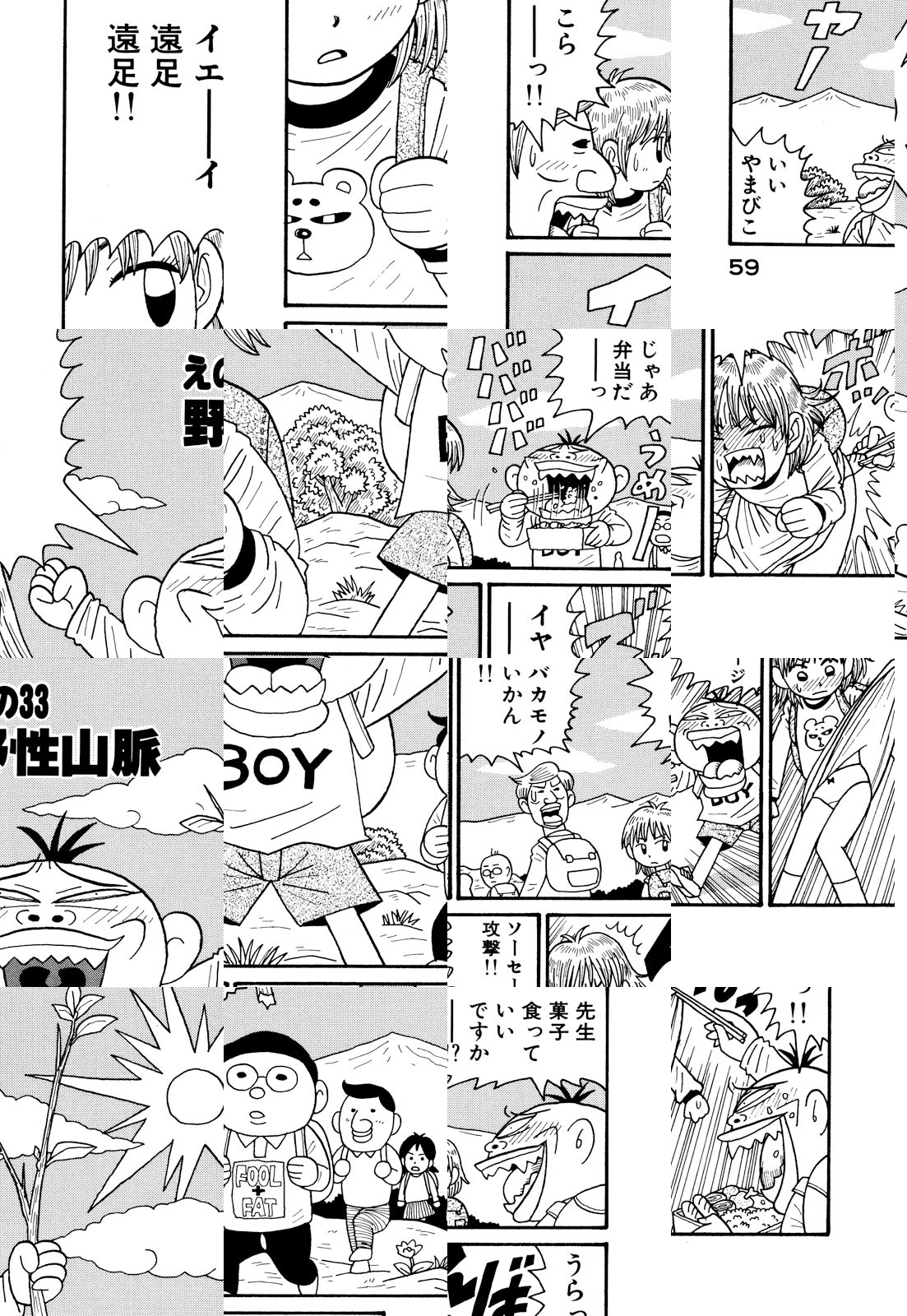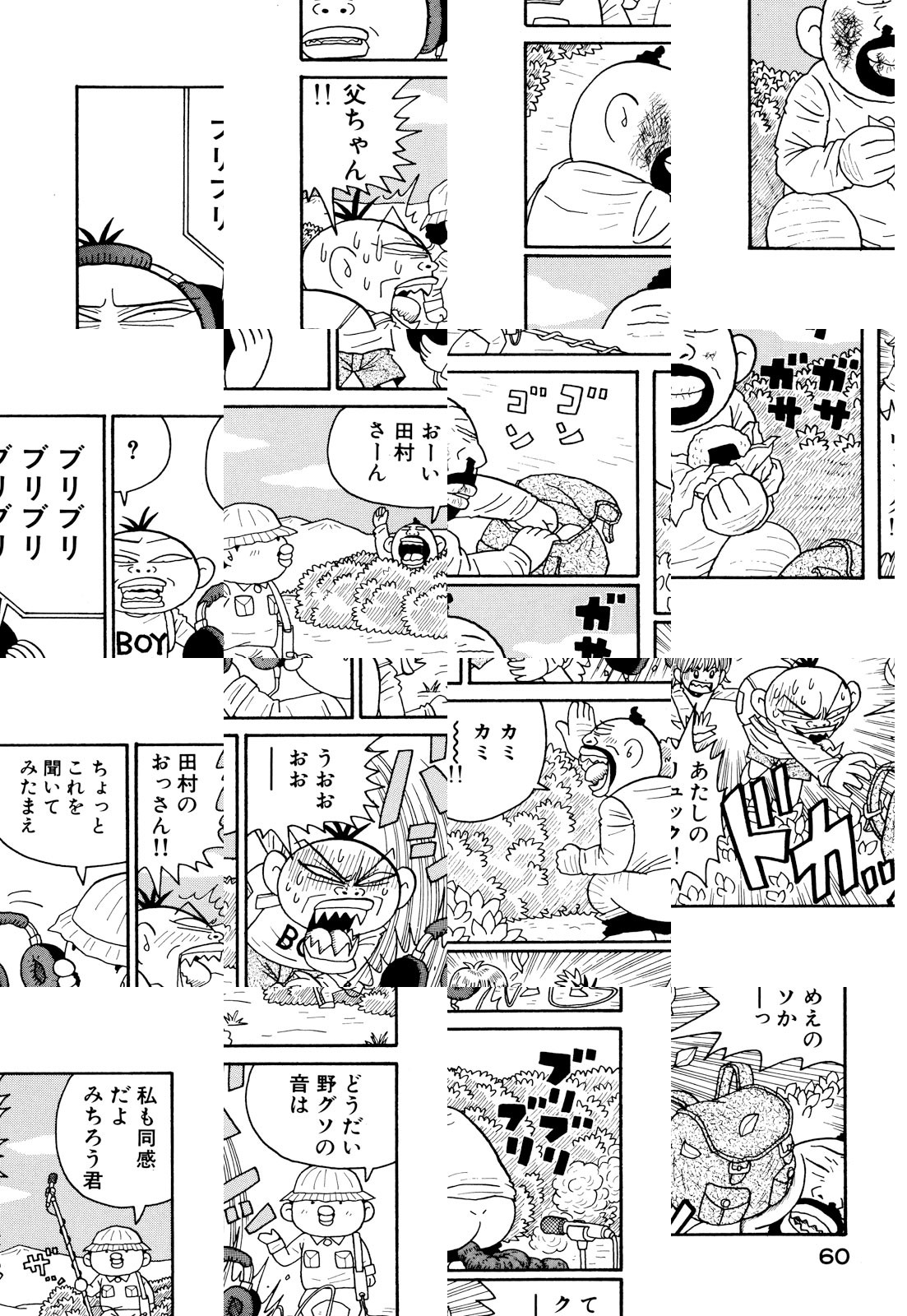 下ネタを軽快なリズムと痛快なアクションで包みました。強烈なキャラクターが奏でる当代随一のハイテンション不条理ギャグ!! 「デビューしたての頃『エログロはやらない』と公言しまくっていたのが遠い昔のことのように思えます。人間ウソつきでも生きていけるものなんですね」(著者・談)