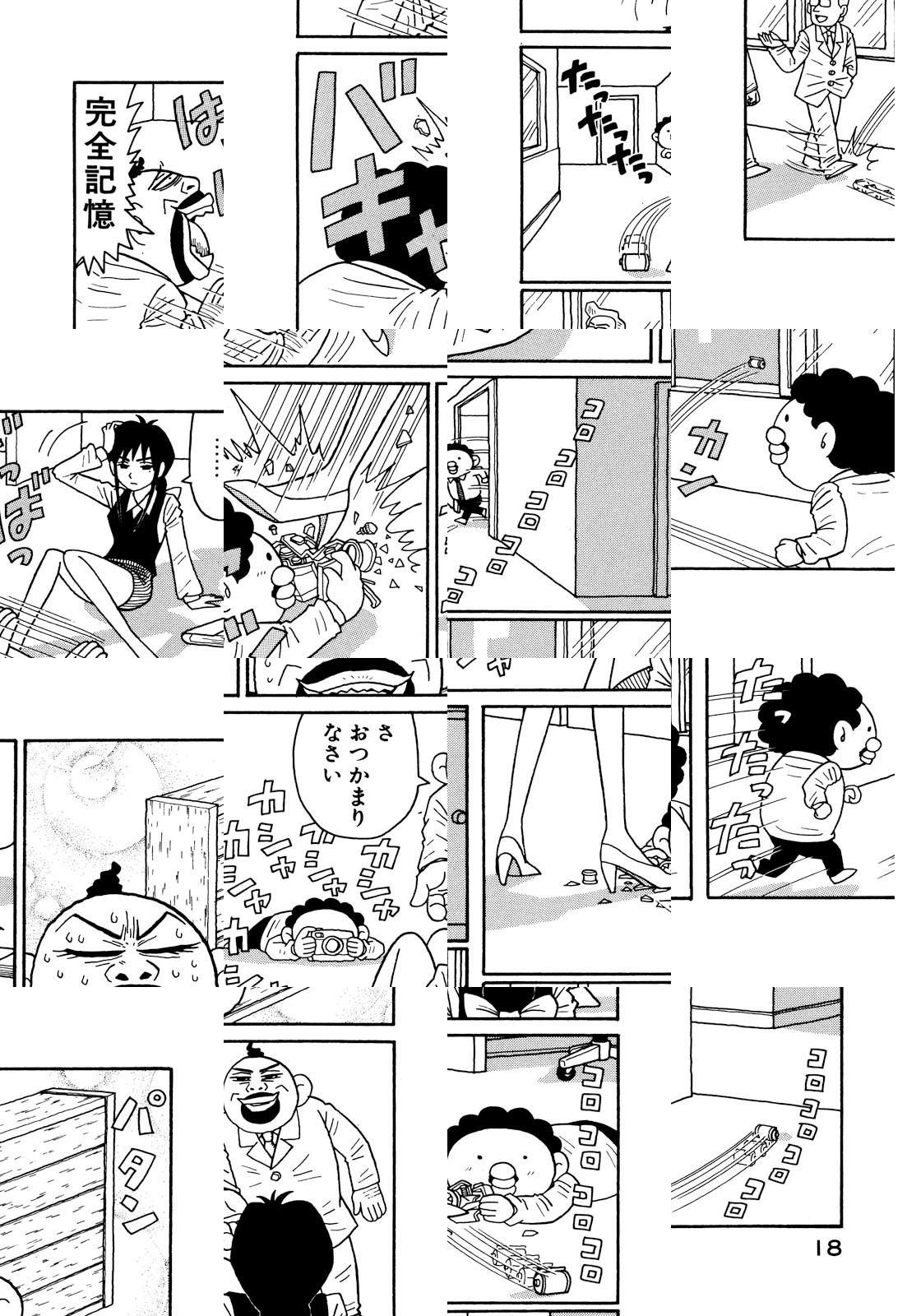 下ネタを軽快なリズムと痛快なアクションで包みました。強烈なキャラクターが奏でる当代随一のハイテンション不条理ギャグ!! 「デビューしたての頃『エログロはやらない』と公言しまくっていたのが遠い昔のことのように思えます。人間ウソつきでも生きていけるものなんですね」(著者・談)