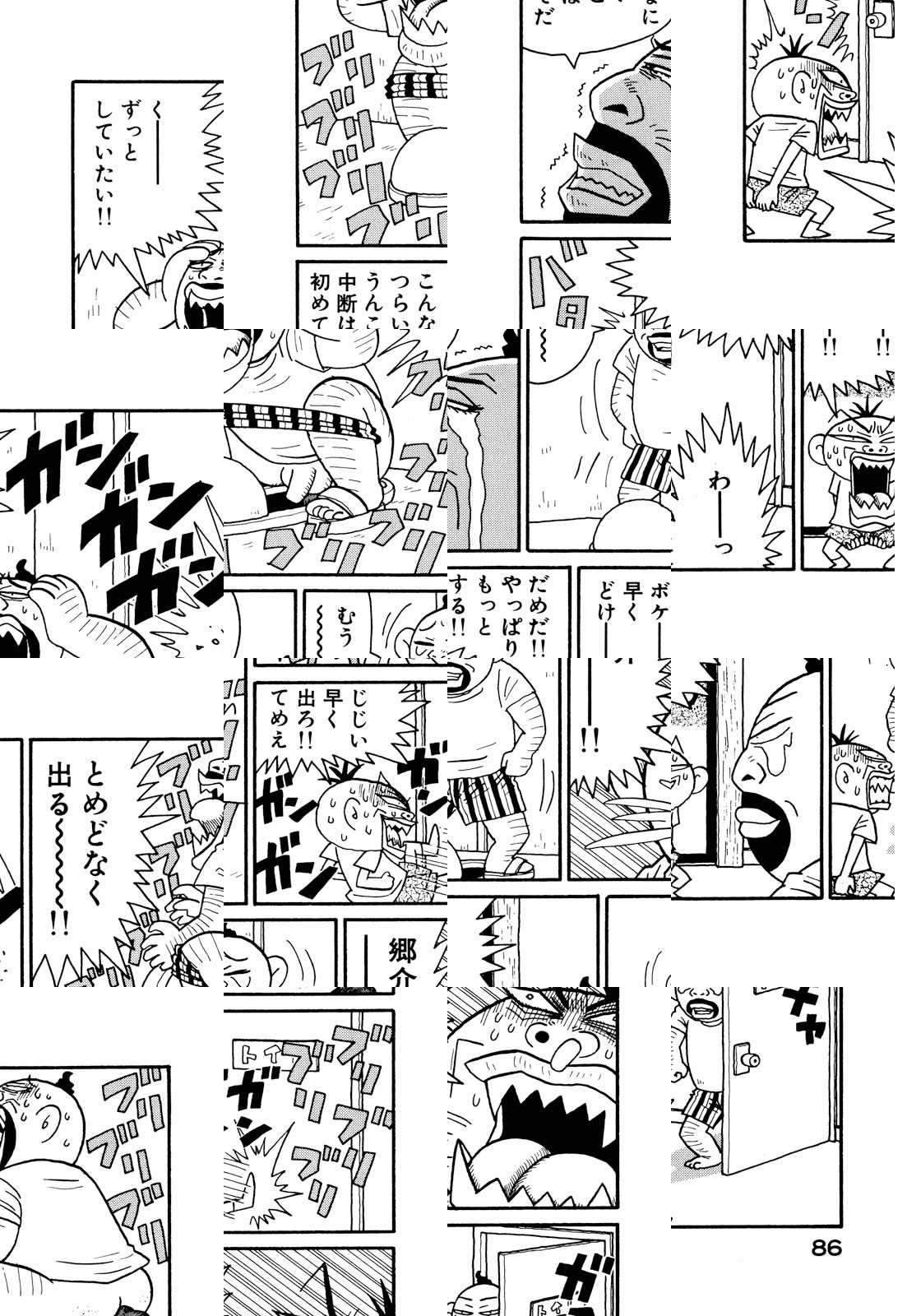 下ネタを軽快なリズムと痛快なアクションで包みました。強烈なキャラクターが奏でる当代随一のハイテンション不条理ギャグ!! 「デビューしたての頃『エログロはやらない』と公言しまくっていたのが遠い昔のことのように思えます。人間ウソつきでも生きていけるものなんですね」(著者・談)