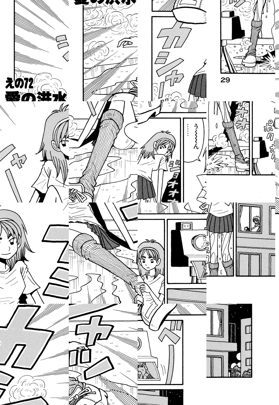 下ネタを軽快なリズムと痛快なアクションで包みました。強烈なキャラクターが奏でる当代随一のハイテンション不条理ギャグ!! 「デビューしたての頃『エログロはやらない』と公言しまくっていたのが遠い昔のことのように思えます。人間ウソつきでも生きていけるものなんですね」(著者・談)