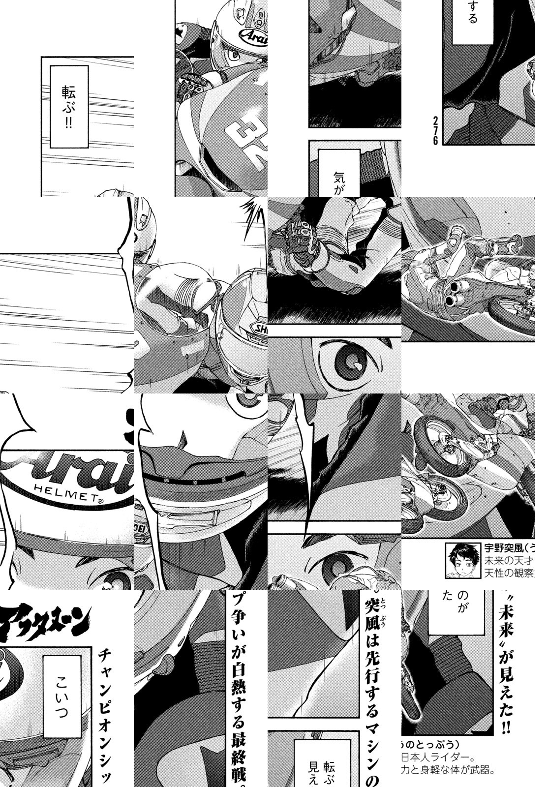 世界最高峰のバイクレース「MotoGP」で世界チャンピオンの最年少記録に挑戦する18歳の若きライダー・宇野突風。7年前、トップウ少年は憧れのお姉さん・新井真音のレース姿を眺めていた。父・鉄平と真音にバイクに乗ることを勧められた突風は、天性の観察力と身軽な身体を武器に、瞬く間にバイクレースの面白さに魅了されていく――――。天才日本人ライダーの伝説が、ここに幕を開けた!