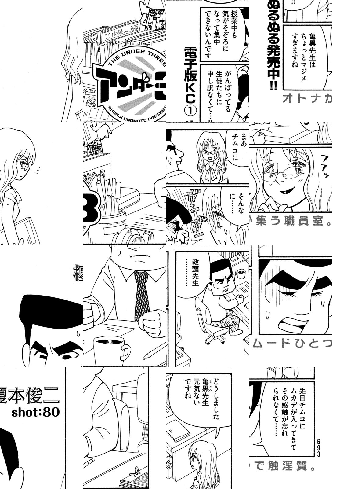 ずのーん!ジャスジャス!ザーン!バローム! 孤高のショート職人・榎本俊二が放出する濃密ギャグ! ミツオ&そう太&マリヨ、品性ゼロ以下の3人組が縦横無尽にかけまわる大活劇! アディオス、アミーゴ。