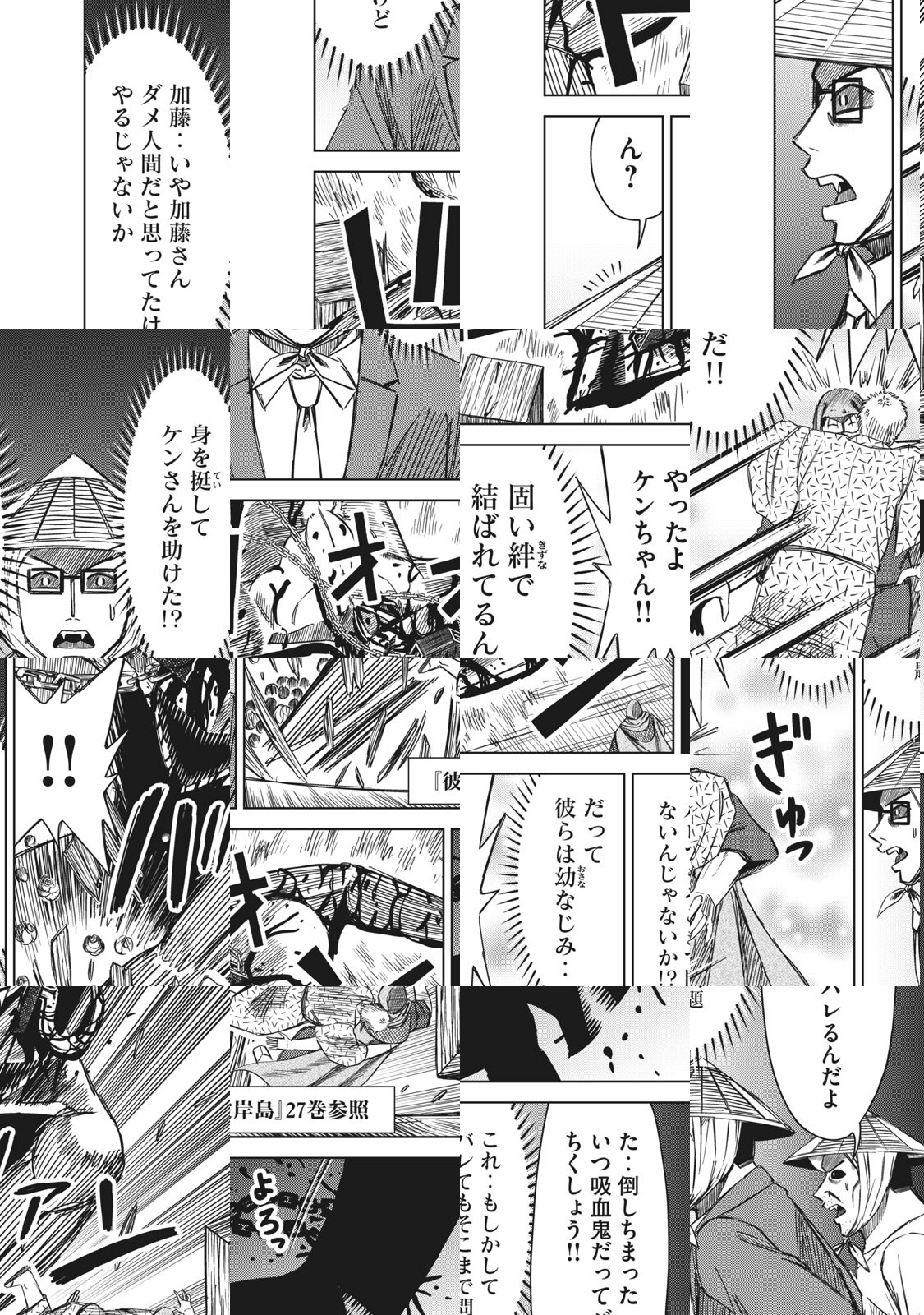 この島、何かがおかしい‥‥。吸血鬼と人間が争う「彼岸島」で、人間のまま吸血鬼たちと働くことになったレジスタンスの青年「岸島」。彼、岸島が、人間目線で吸血鬼の世界にツッコみまくる! ありそうでなかった、本邦初『彼岸島』公式スピンオフ、始動‼