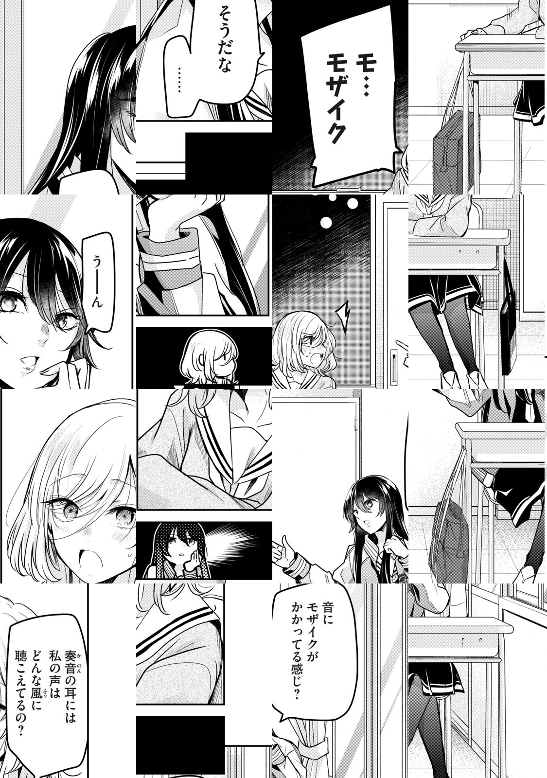金田一咲希は高校入学直前のある日、ピアノレッスンに向かう途中で見知らぬ同世代の少女とぶつかり手を擦りむくが、相手から無言で落とした楽譜を丁寧に拾われ絆創膏をもらう。咲希は印象的だったその少女とクラスメイトとして再会し、名前が及川奏音、そして耳が不自由だと知る。学校では障害を理由に周囲と距離を置く奏音に、淋しさを覚えた咲希はどうにか分かり合おうとし、そんな彼女の姿に奏音の態度も次第に変わっていき…。