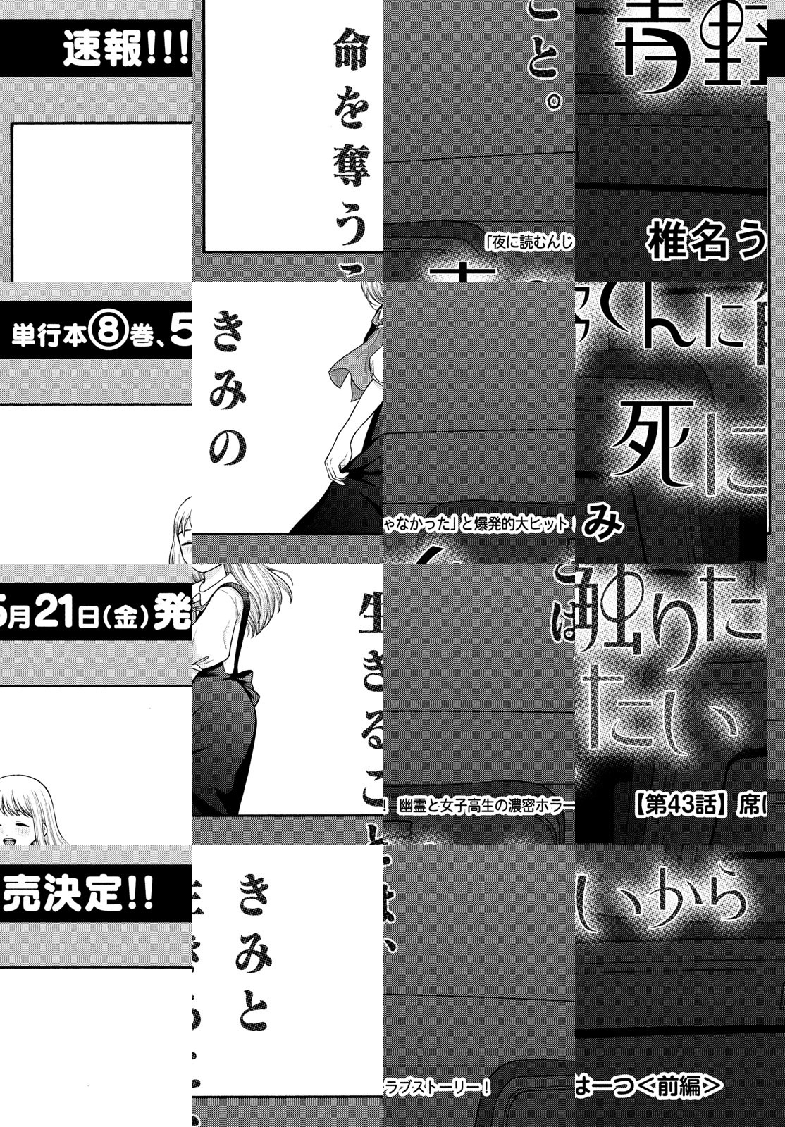 君に触れるなら、死んでもいいよ。これがわたしの愛なんだ。アフタヌーン公式サイト「モアイ」掲載の1話が300000PV突破で話題! 天然少女・優里ちゃんと、その彼氏・青野くん。ごく普通のお付き合いをしていたふたりだが、ある日突然、青野くんが「いなくなって」しまう……。絶対に結ばれないし、触れ合えないふたりの、でたらめで切実すぎるラブ・ストーリー。