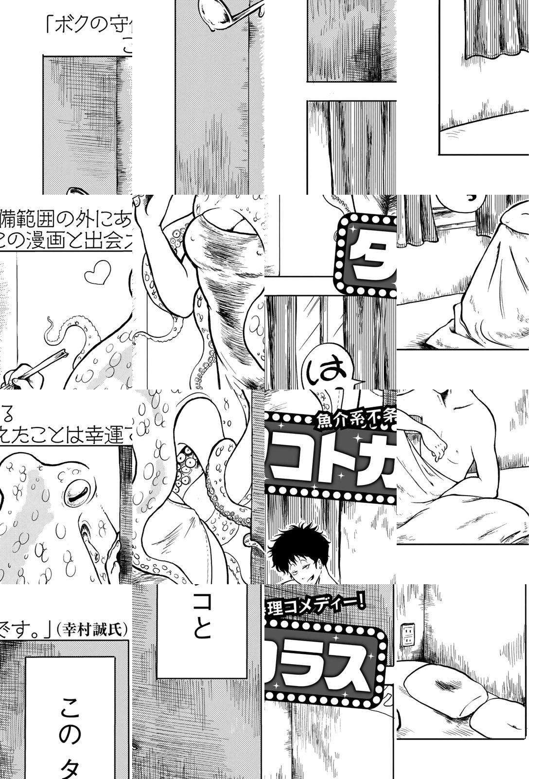【アフタヌーン四季賞2020夏 幸村誠特別賞】SMクラブに勤める主人公・カラスは行き場のない女性と同棲を始める。ただ、その助成はタコ女なのだ! 彼女を巡って、SMクラブは大騒ぎ。ハチャメチャ不条理コメディー!