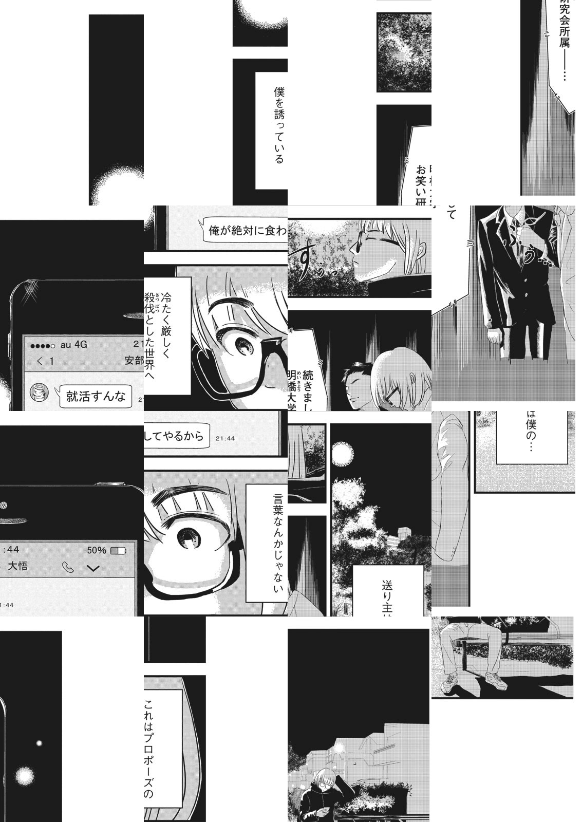 【アフタヌーン四季賞2018夏 四季大賞】大学のお笑いサークルでコンビを組む、4年生の安部と就活を控えた大貫。就職か、芸人への道か、揺れ動く大貫。「就活すんな。オレが絶対に食わしてやるから」という安部のメッセージに、大貫の決断は─。
