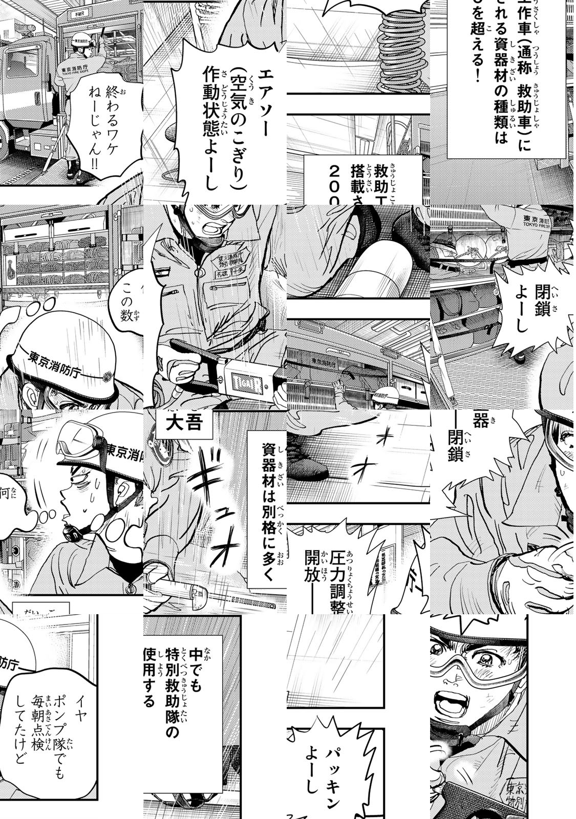 新人消防官。その名は「大吾」! 火事、災害、人命危機。人類の憎むべき敵に立ち向かえ! 曽田正人が再び描く、熱き消防官の物語。“救助”という究極の戦場へ。若き三人の消防士たち! 地獄の”特別救助技術研修”に臨む斧田 駿。そこで十朱 大吾、中村 雪と仲間になる。ある計画のため東京消防庁に招かれた歴戦の勇者・甘粕 士郎が彼らを”現場”へと送り出す――!!