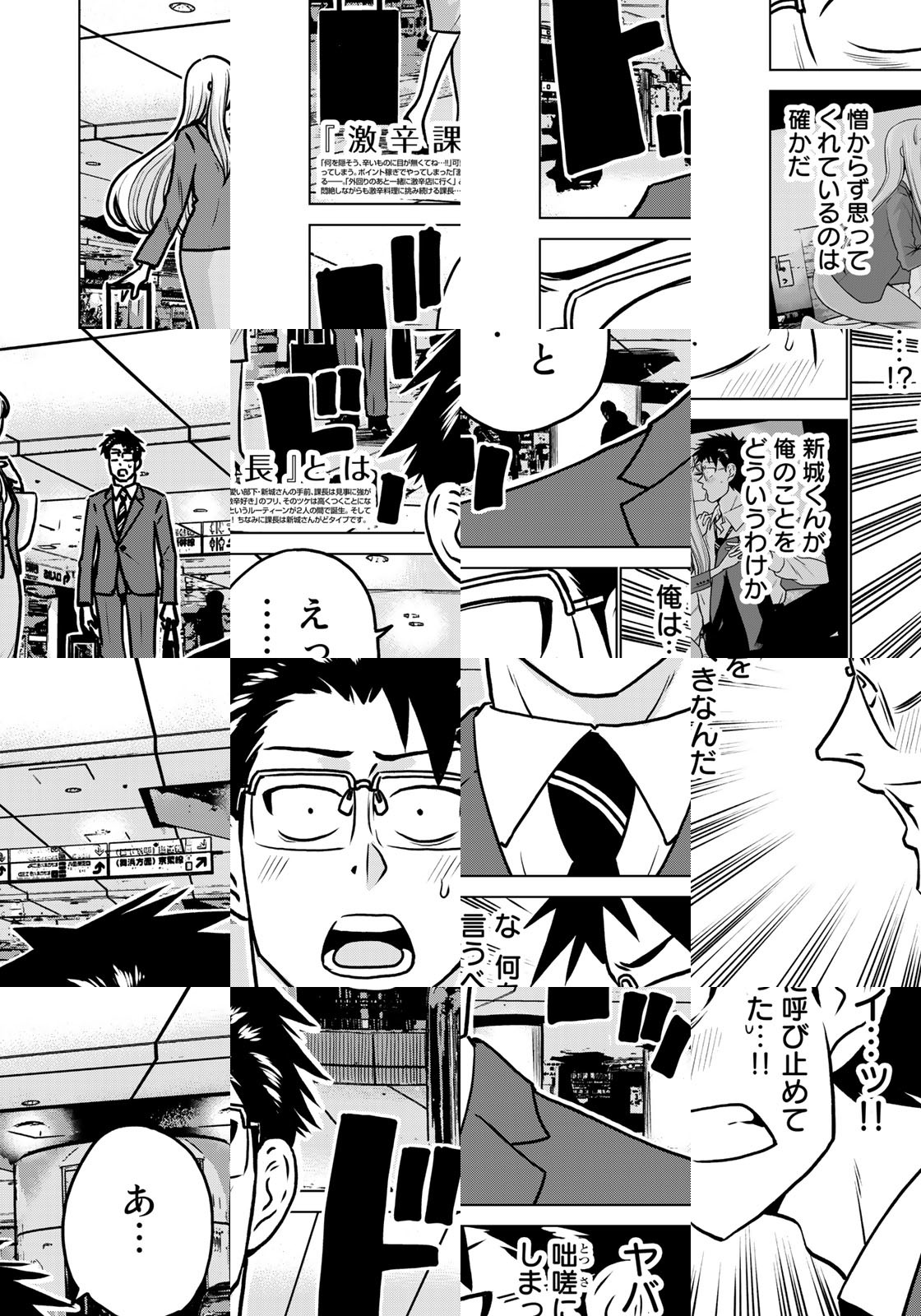「何を隠そう、辛いものに目が無くてね…!!」激辛料理が大好物だと、可愛い女性部下の前で強がってしまった課長。ポイント稼ぎの代償は大きくつくことに…! 部下に連れていかれる、激辛料理店の数々。マジで辛い! けど美味い…! でもやっぱり辛い! そしてこれは激辛デートなの…? 登場するのは実在の激辛激ウマ店。お店の紹介記事もあります。課長の悶絶した激辛料理、ぜひチャレンジしてみてください!