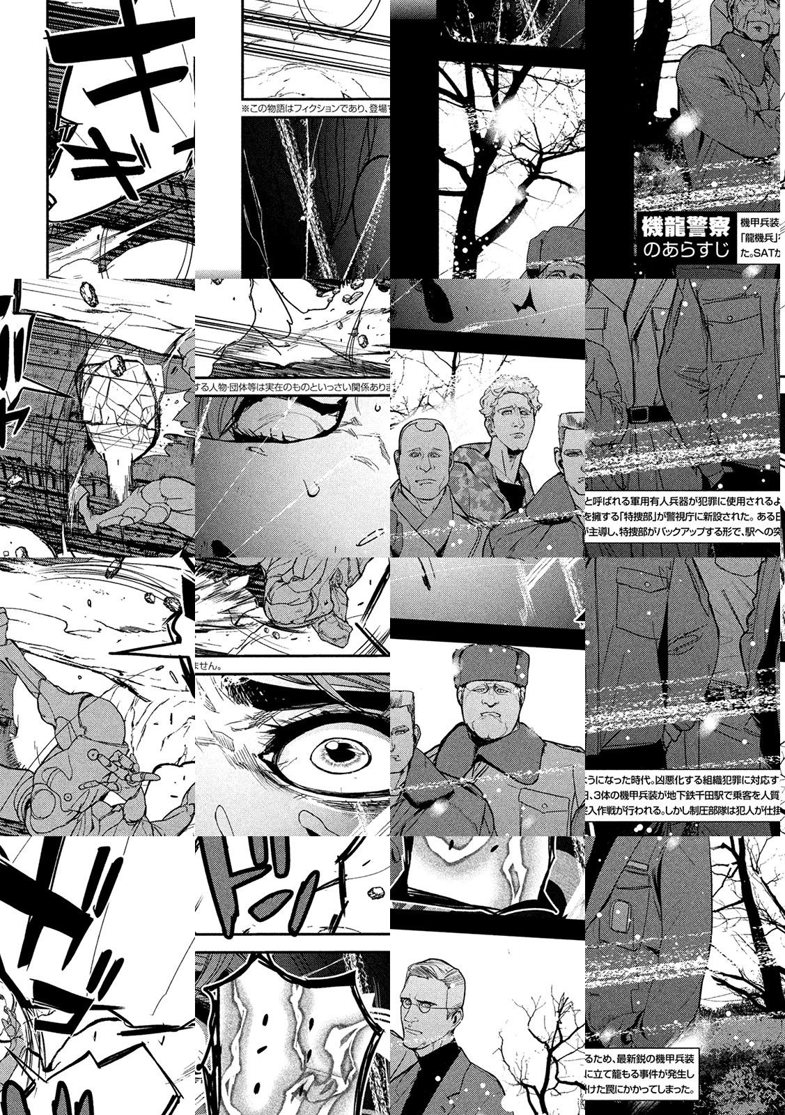テロや民族紛争の激化に伴い、機甲兵装と呼ばれる軍用有人兵器が普及した時代。 組織犯罪が凶悪化、大規模化するなか、元外務官僚の沖津旬一郎をトップとする特殊部局「特捜部」が警視庁に新設された。 特捜部は最新鋭の機甲兵装「龍機兵」を擁し、搭乗員として3人の傭兵を雇っているため、警察組織内から「裏切り者」と疎んじられる。そんな特捜部メンバーが、国内外を揺るがす凶悪な犯罪に立ち向かう!!