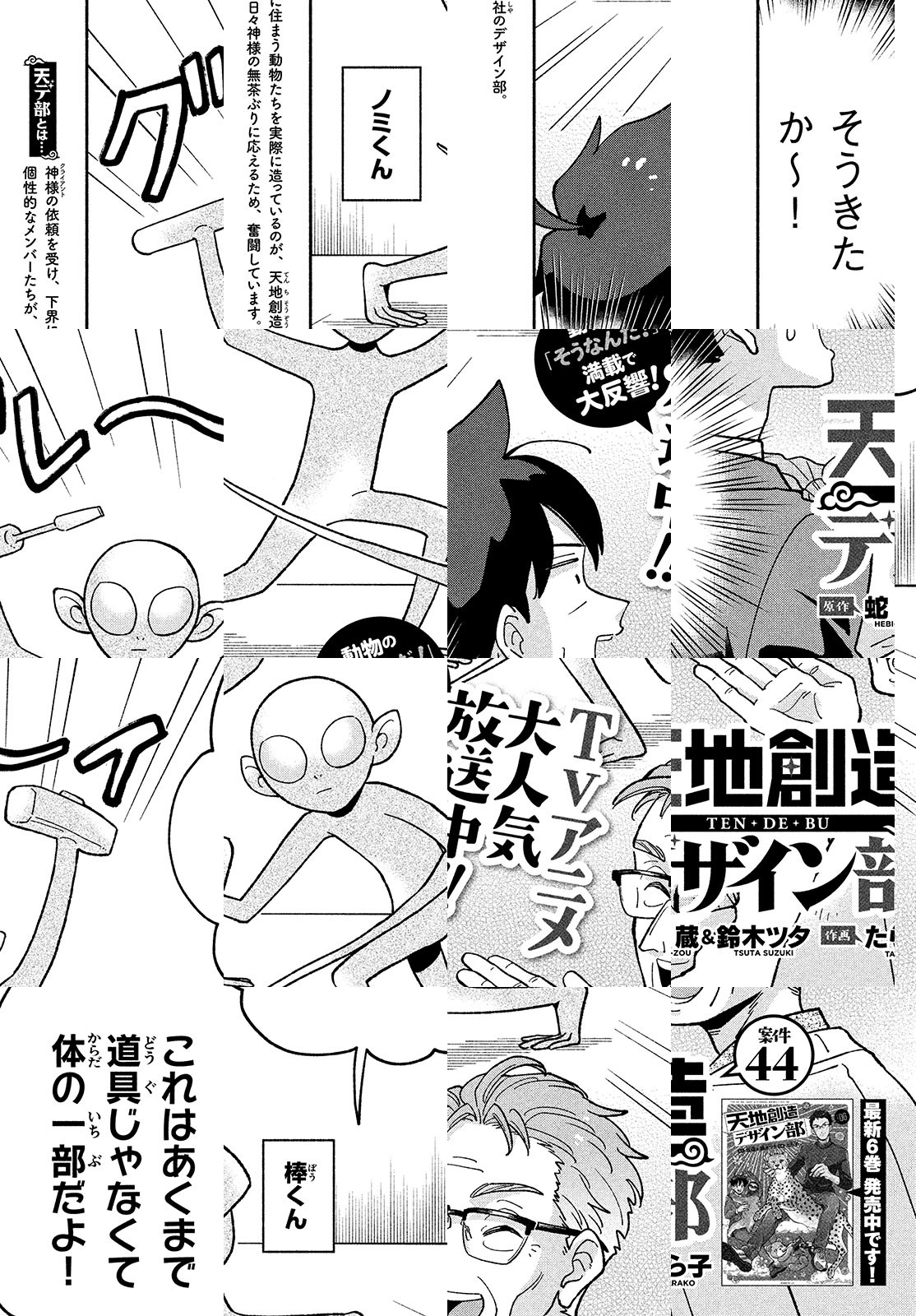 天界にある動物の「デザイン室」では、神様(クライアント)からのムチャ振りを受けて、日々さまざまな動物がデザインされていた。「ユニコーンってなんで存在しないの?」「美味しい生き物の条件って?」「海で最強の動物は?」「蛇と鳥、どっちが強い?」など、動物への素朴な疑問で楽しく学べる、動物創造コメディ!!
