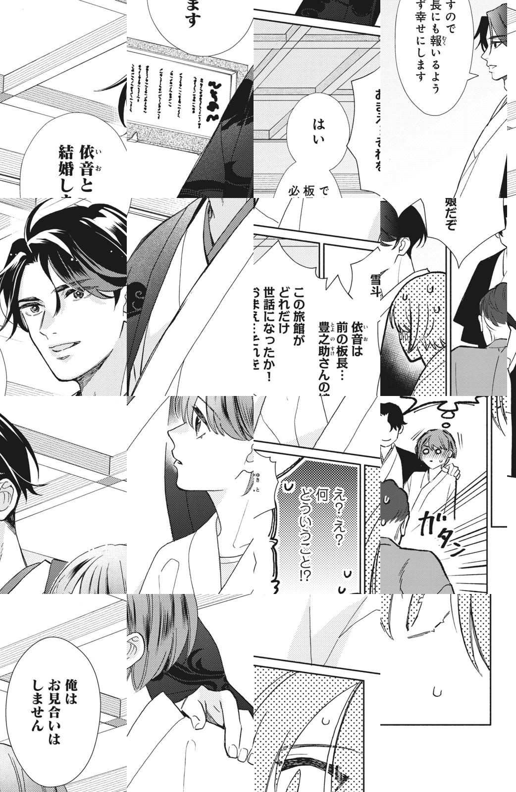 浅草の老舗旅館で板前修業中の鶴岡依音(つるおか・いお)は、跡取りの若旦那様に幼い頃から恋心を抱き続けていた。ある時、若旦那の縁談のウワサをききショックを受けるのだが、若旦那からまさかのプロポーズを受けて…⁉老舗旅館の若旦那×板前修業中のピュア女子、甘々新婚生活☆