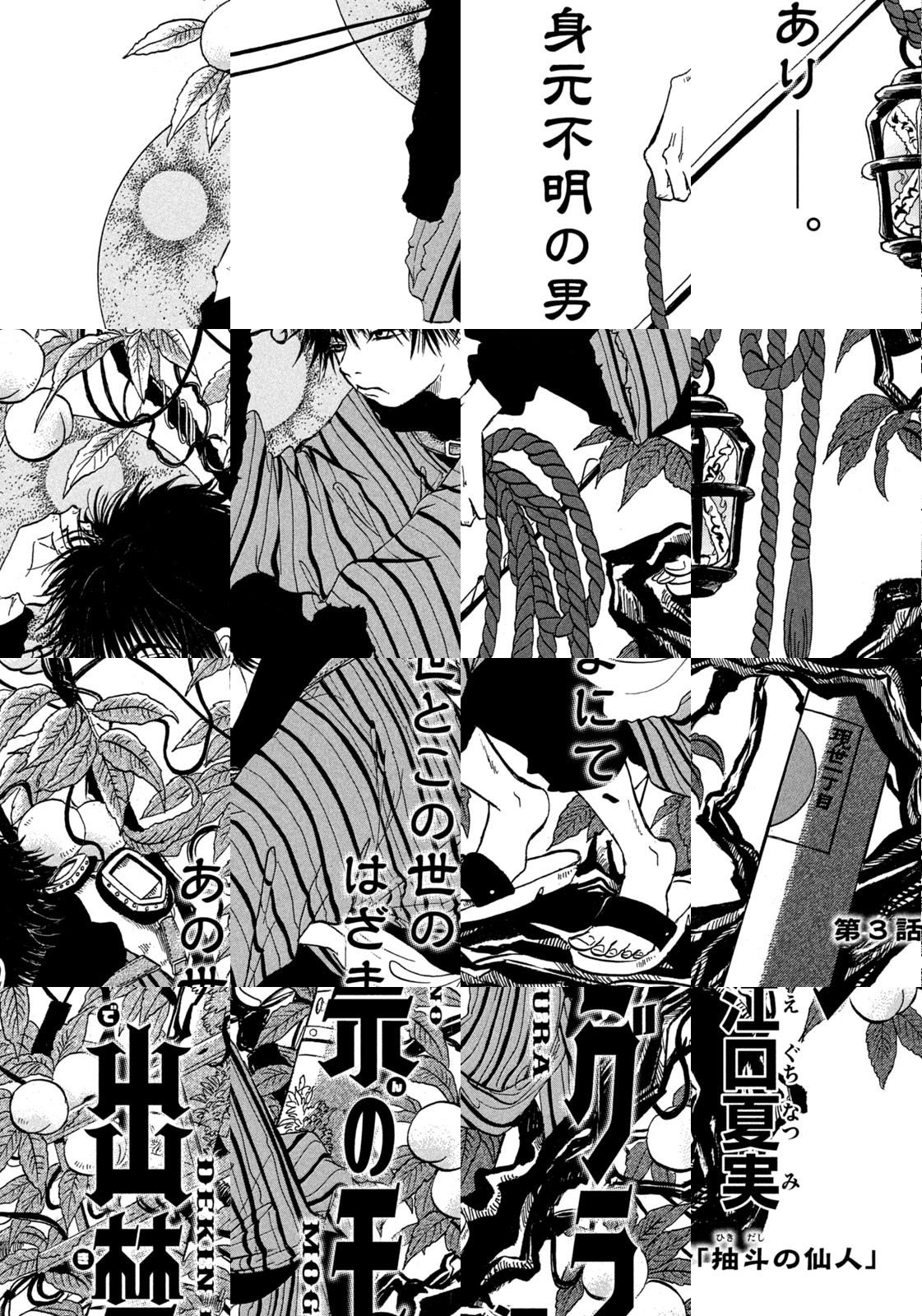 『鬼灯の冷徹』であの世を描いた江口夏実が、今度はこの世を怪しくおかしく描く!大学生の真木(まぎ)と八重子(やえこ)はある日、空から降ってきた広辞苑で男がケガをする現場に遭遇する。頭から血を流しているのに救急車も警察も嫌がるこの男、何やら様子がおかしい。さらに、この男と出会って以来、真木と八重子には妙なものが見えるようになりーー。世にも不死議な物語の幕が開く!