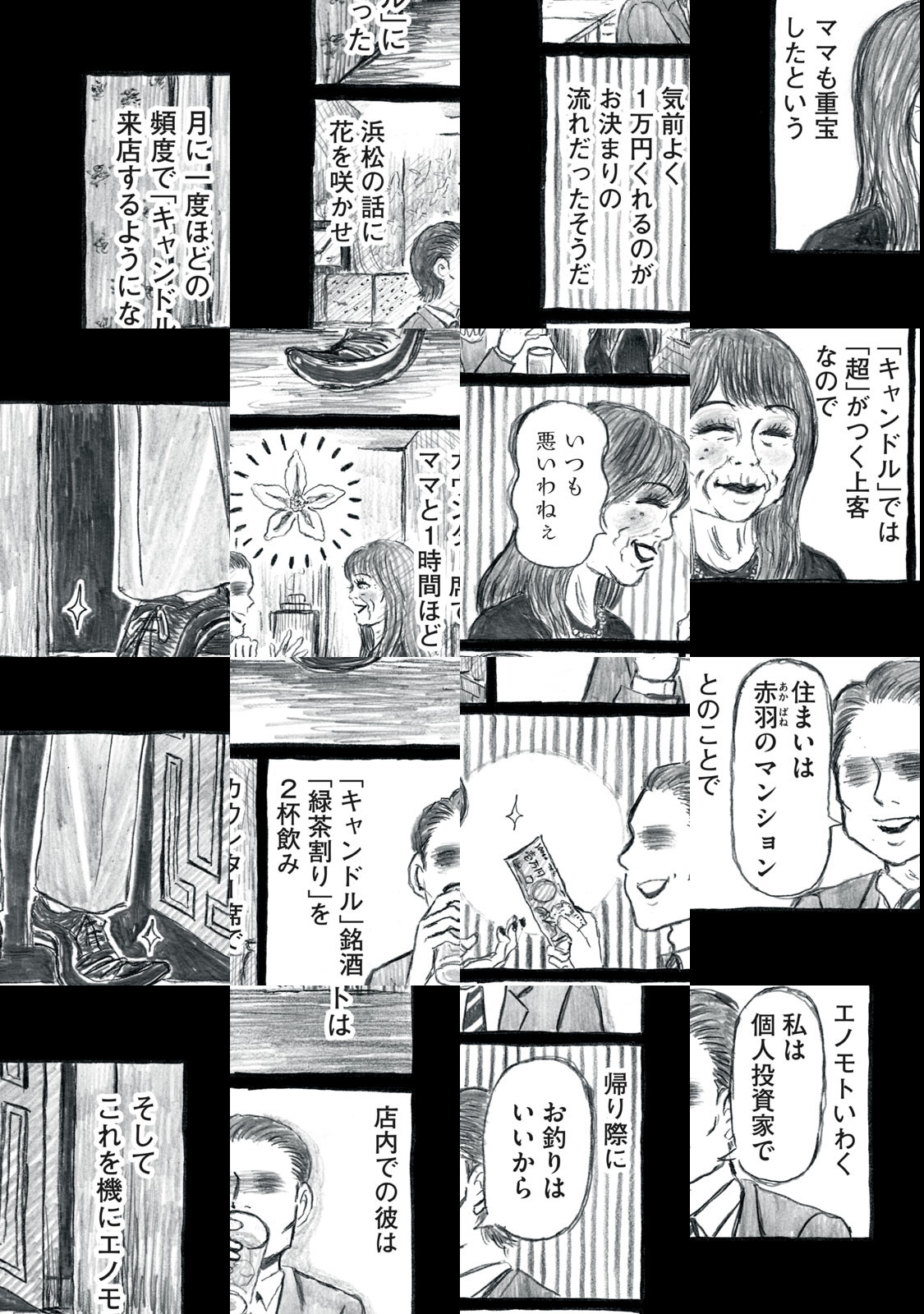 かつて清野とおるが執筆を断念した“青春の一ページ”……。それは、『東京都北区赤羽』という作品を抹消しうる恐れのあった、禁断のスナック「キャンドル」に関するエピソード。東京都北区十条の片隅で営巣していた「魔」、そこを牛耳る「ママ」、そして、誘蛾灯に引き寄せられたかのように店に集う珍奇な「客」を通して、底のない悲喜劇が描かれる。
