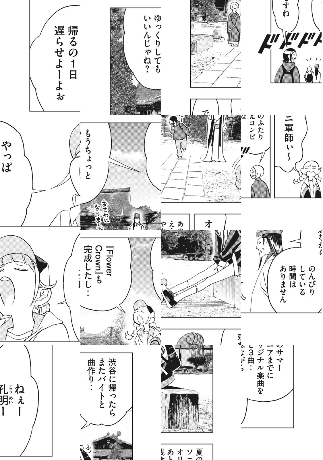 五丈原の戦いで死期を迎えた名軍師・諸葛亮孔明は、若い肉体に戻り、現代日本へと転生した! 渋谷のパリピ達に誘われ、たどり着いたのはダンスミュージックが鳴り響くチャラめなクラブ。そこでシンガーを目指す月見英子と出逢い、孔明の二度目の人生が幕を開けた! 三国志時代、天下泰平のために生きた彼は、なんの為に生きるのか--!!