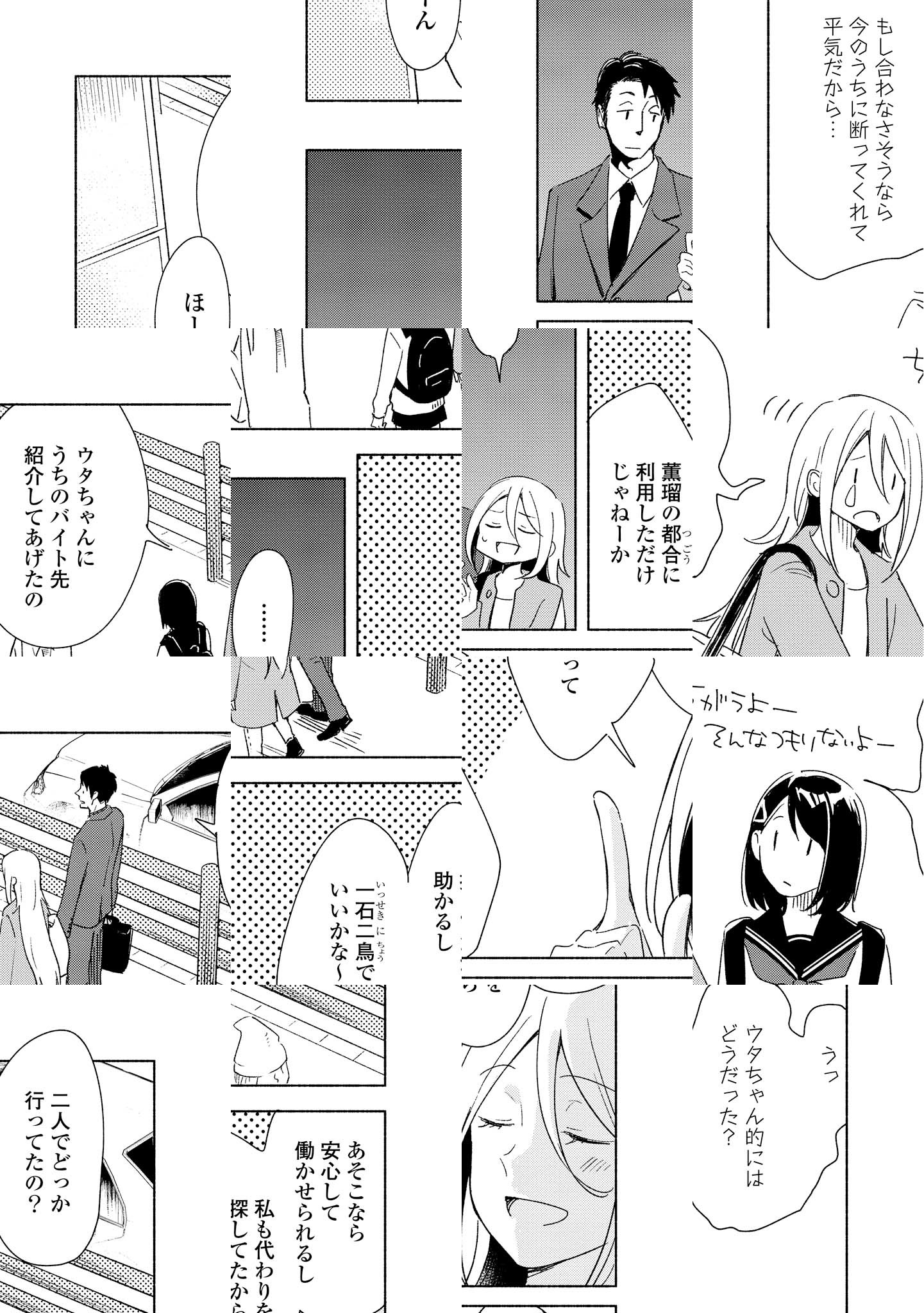 ごくごく平凡な高校生、鳴瀬ウタには、人には言えない秘密があった。それは、実の兄のお嫁さんである薫瑠に恋をしていること。決して実らない恋だけど、日々の営みが嬉しくて、その一方で兄との新婚生活を見ていると胸が張り裂けそうで……彼女は心を押し殺す。そっと心に秘めた恋心が、目を覚まさないように――