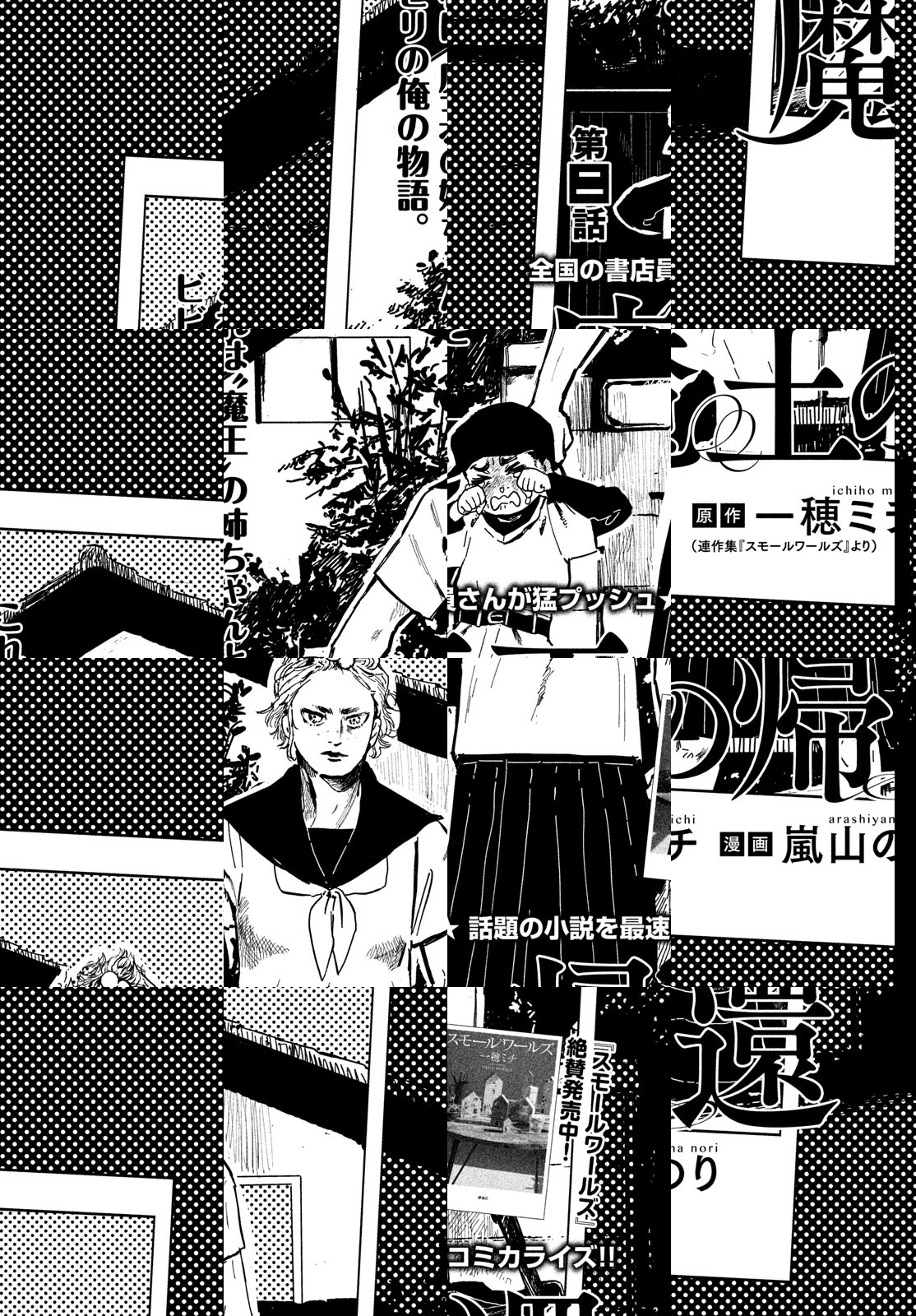 全国の書店員さんの共感度5つ★ 話題沸騰の連作小説集「スモールワールズ」所収の短編「魔王の帰還」を、新鋭・嵐山のりが最速コミカライズ! ある事件をきっかけに野球部をやめ、けだるい日々を送る高校生・鉄二の家に突然、嫁いだ姉ちゃんが帰ってきた。身長188cm、体重怖くて訊けない、名前が真央で、あだ名は魔王。色々スケールでかすぎの姉ちゃんと、図体は大きいけど小心者の弟が共闘する、破天荒で切なくて、何より熱い夏休み!