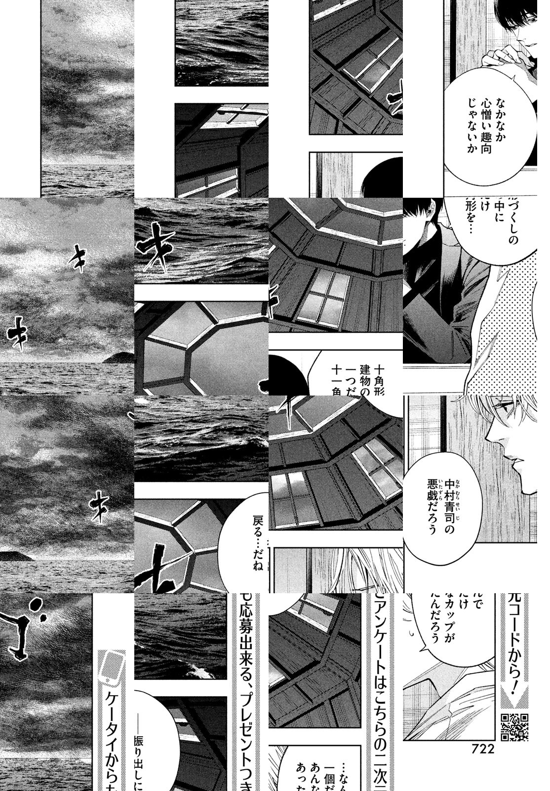 孤島に建つ十角形の奇妙な館を、大学のミステリ研究会に所属する7人が訪ねる。この館を設計した中村青司は、半年前に謎の焼死を遂げていた。そして、凄惨な殺人劇が、幕を開ける――。2018年に第22回日本ミステリー文学大賞を受賞した綾辻行人による新本格ミステリ『十角館の殺人』を、美麗画力の清原紘が描く!
