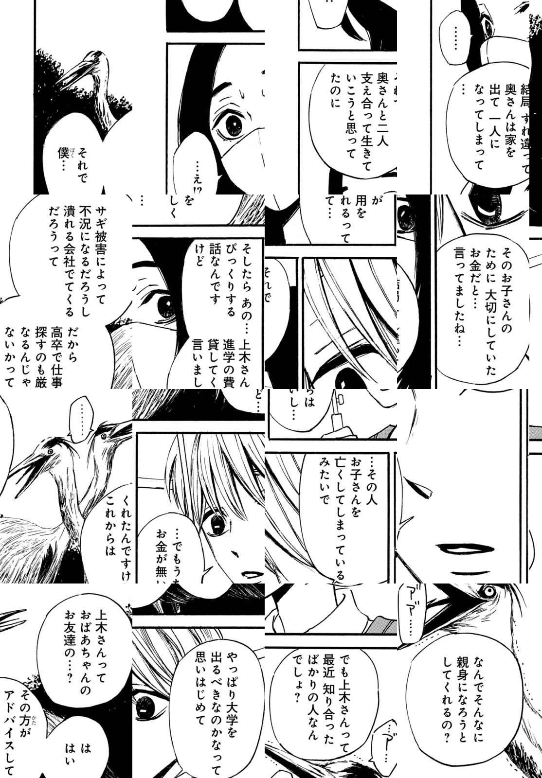 側から見れば恵まれているようにみえるが、30歳を半ばにして未だ人生を思い悩んでいるりつか。彼女のパート先にいつも現れる高校生・要は誰からの目にも孤独そうに見えた。りつかはサギの大群が舞う河川敷で要と出会う。そこで思わぬ感情が生まれて…。異才・奈良原せつが描く鮮烈で痛ましいラブストーリー。