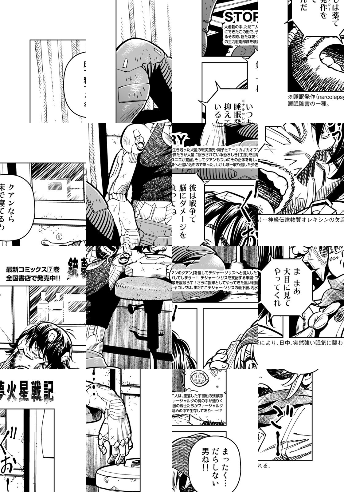 火星の戦災孤児・陽子は同じく戦災孤児のエーリカと共に辺境の町マミアナの孤児院へと入れられた。 陽子とエーリカは貴族の血を引くという先輩ニノンからの洗礼を受けながらも、孤児院の生活に馴染んでいった。 しかし安息の日々もつかの間。 陽子を追う謎のサイボーグが現れ、孤児院も襲撃されてしまう。 陽子はエーリカ、ニノンたちと共に揚水場に隠れるのだが――。日本が世界に誇る最強SFアクションロマン最新作、開幕!