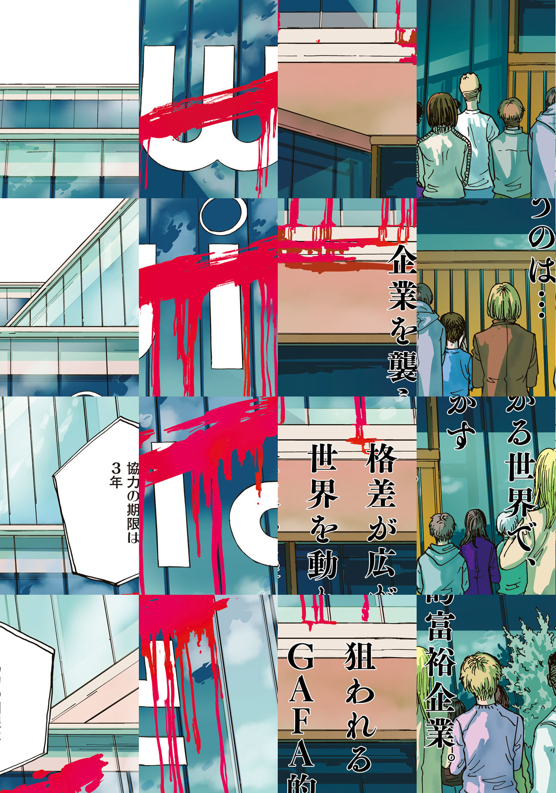 貧富の差、人種の差、宗教の差。新自由経済が進み格差が広がる社会。そんな世界で次々狙われるGAFA的企業。世界を動かす企業を襲う「組織」。「組織」が次に狙うのは…。そして、その「組織」に父親を殺された主人公は、彼らを追い詰められるのか!?