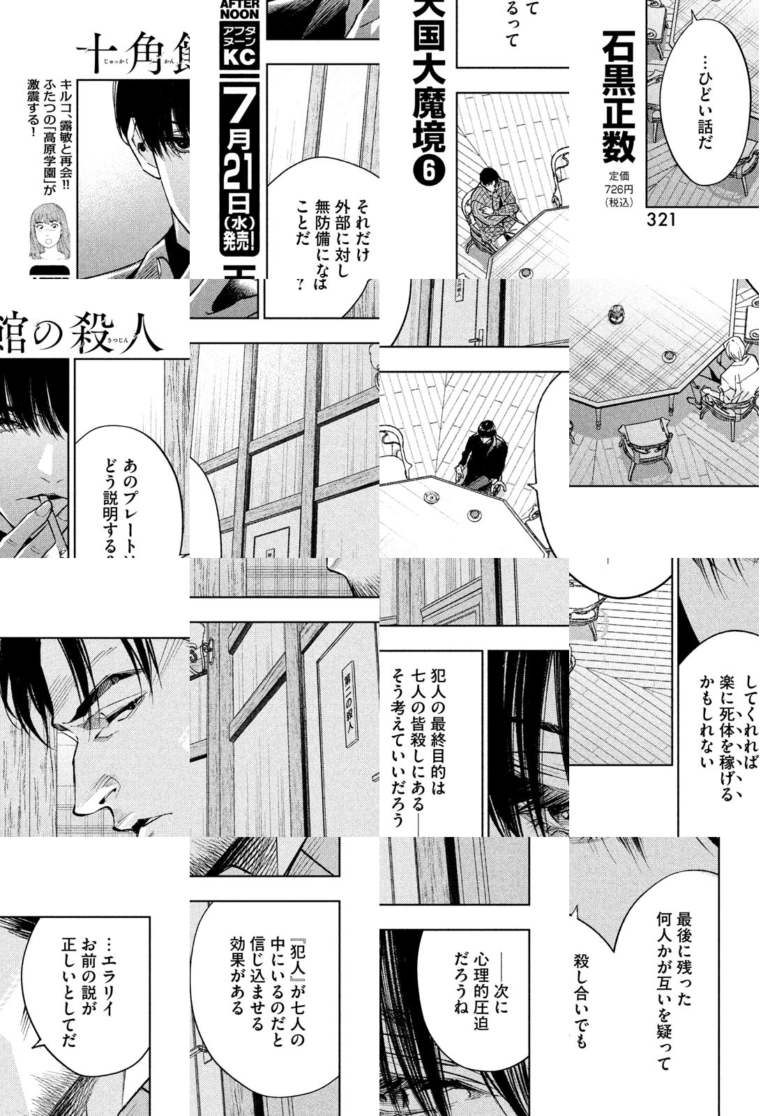 孤島に建つ十角形の奇妙な館を、大学のミステリ研究会に所属する7人が訪ねる。この館を設計した中村青司は、半年前に謎の焼死を遂げていた。そして、凄惨な殺人劇が、幕を開ける――。2018年に第22回日本ミステリー文学大賞を受賞した綾辻行人による新本格ミステリ『十角館の殺人』を、美麗画力の清原紘が描く!