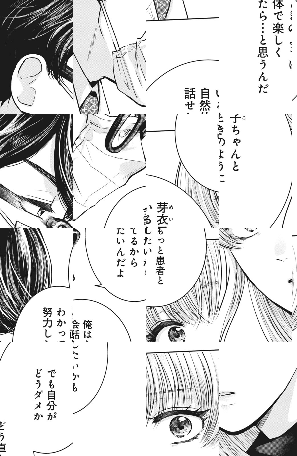 不器用医師×気にしすぎ女子、ヒミツのカウンセリング始めます!不眠の相談のため、かかりつけクリニックに通うOLの芽衣子は、ある日知らない医師と部屋に閉じ込められてしまう。相手はよく見たら、幼馴染の至くん!?しかも閉じ込められている間にキスしちゃって――!? お互いの悩みを解決するため、土曜午後の診察室は、お題をクリアするまで出られない部屋に変わる!