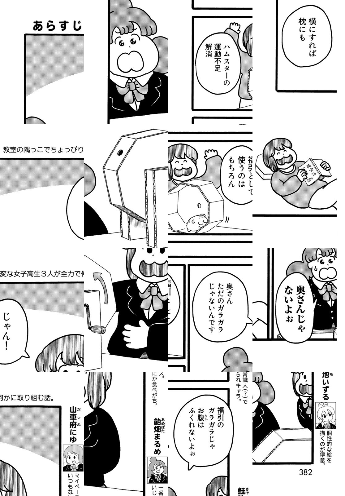 とある高校の教室の隅っこでちょっぴり変な女子高生が全力で何かに取り組むお話。教室で餃子を焼いたり、コーヒー豆を挽いたり。時には〝おでん〟たちの葛藤を妄想したり…。ゆるく描かれた3人の女子高生が教室の隅で織りなすシュールギャグ漫画!デフォルメされた可愛らしいキャラクターが織りなす日常の中に突然登場する写実的な絵柄がクセになります。