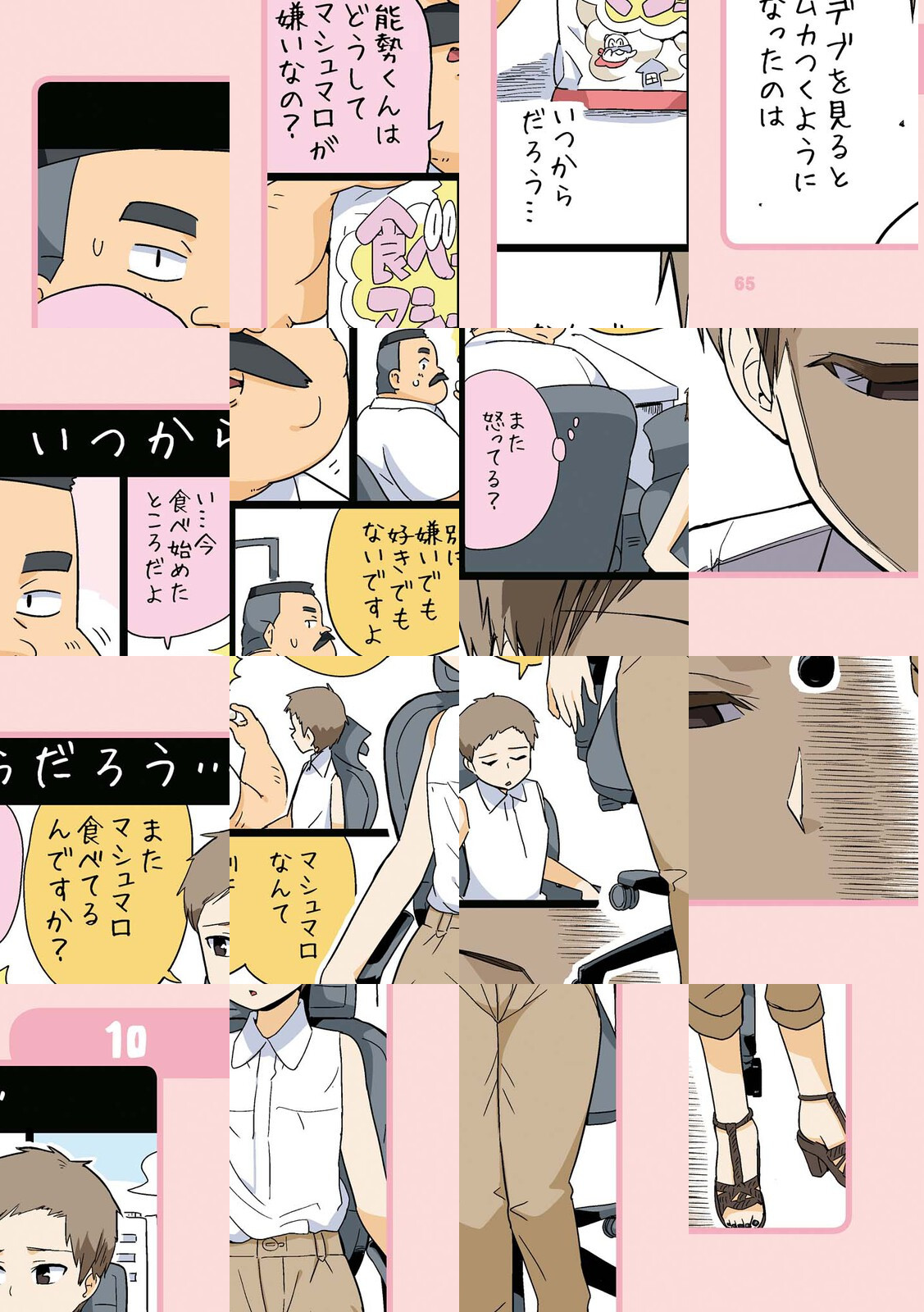 マシュマロが大好きなおじさん・日下と 日下のことが大好きなOL・若林。そんな二人のビミョーに?かみ合わない恋模様が今日もオフィスで繰り広げられる。