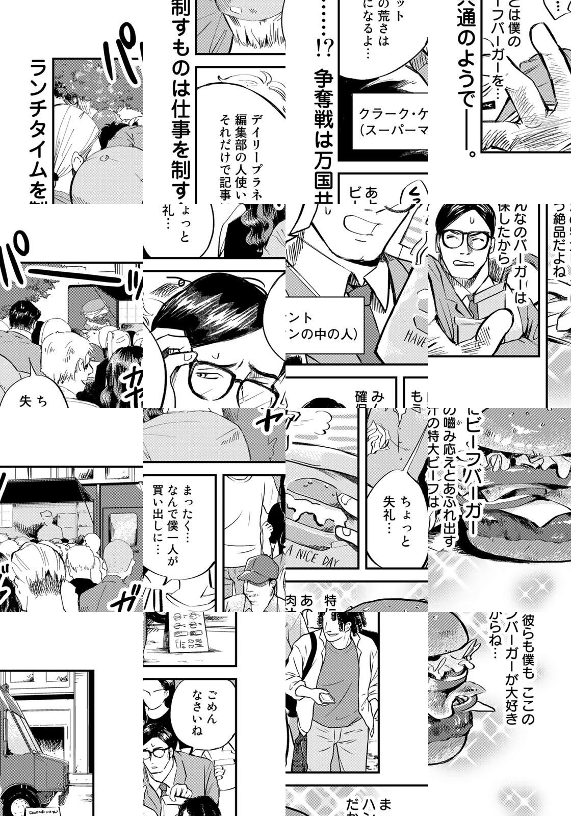 スーパーヒーローも腹は減る。地上最強の男・スーパーマンとして忙しく働く彼の毎日の楽しみ——それは日本で食べるランチ。超人的聴力で自分のお腹が鳴る音が聞こえたら、路地裏でスーツを脱ぎ捨て、日本の外食チェーンへ飛んでいく。釜飯を熱光線で温めたり、天丼の具材でジャスティスリーグを結成したり、ランチタイムのスーパーマンはマイペースでいい! DCコミックス公認のスーパーマン×グルメ漫画!
