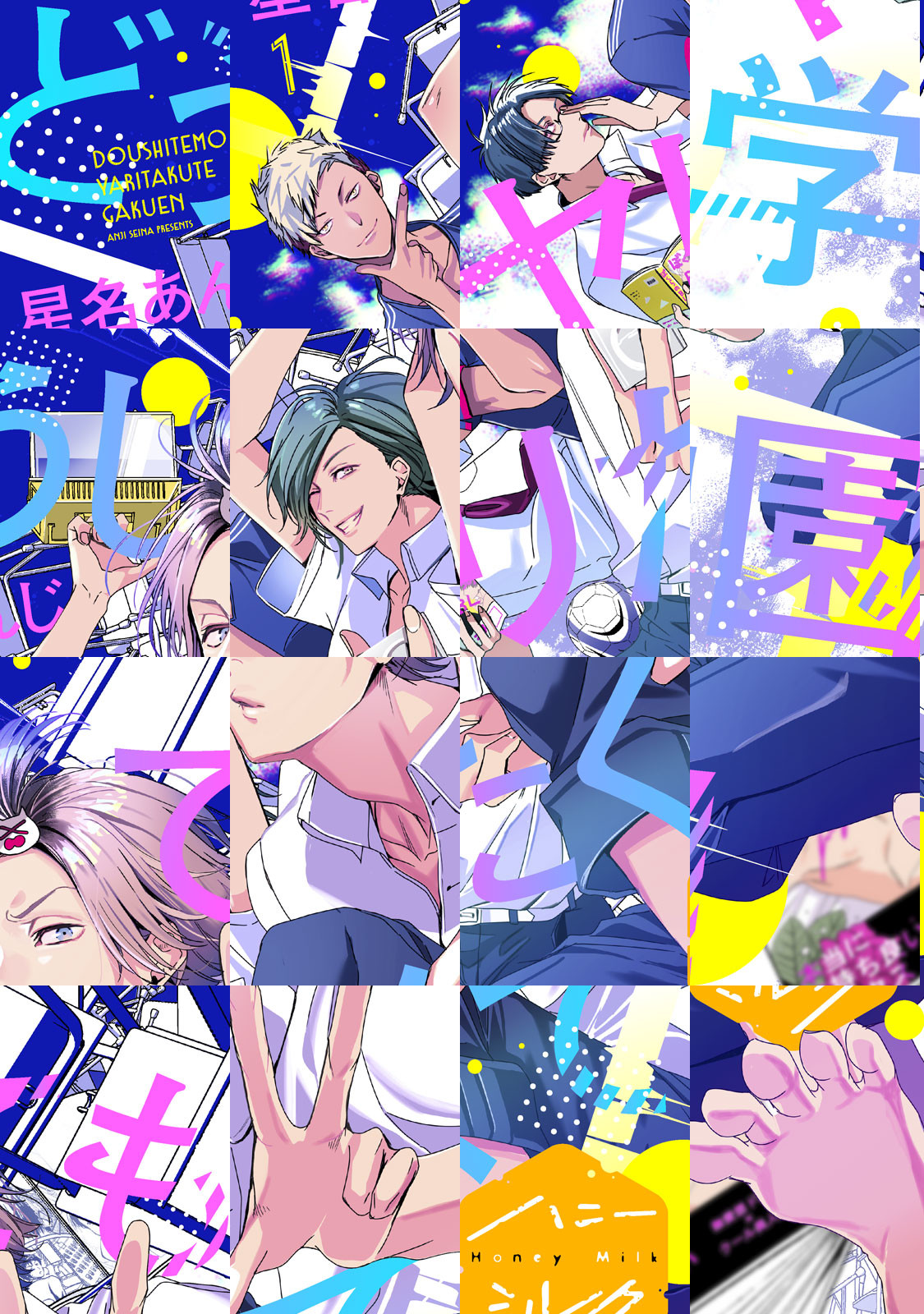 おバカな男子校に通う、おバカな童貞男子高校生4人。女の子にモテたい、ヤリたいという欲望が頂点に達したある日、ノリと勢いで男同士でヤッてみることに。それが意外にも気持ちよくて、探求心に火がついた! BL漫画を参考に、4人の快楽研究はまだまだ続く!? 星名あんじが送る、アッパー系BL!【月刊デジタルBL誌「ハニーミルク」連載作品】