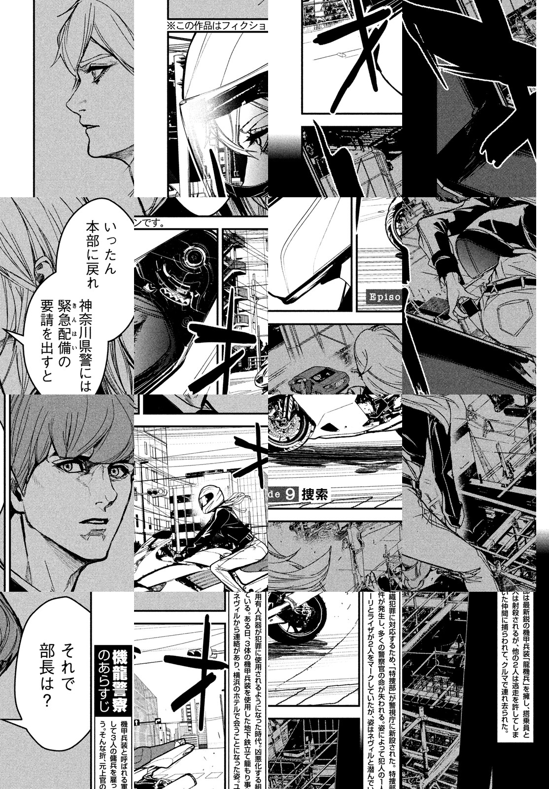 テロや民族紛争の激化に伴い、機甲兵装と呼ばれる軍用有人兵器が普及した時代。 組織犯罪が凶悪化、大規模化するなか、元外務官僚の沖津旬一郎をトップとする特殊部局「特捜部」が警視庁に新設された。 特捜部は最新鋭の機甲兵装「龍機兵」を擁し、搭乗員として3人の傭兵を雇っているため、警察組織内から「裏切り者」と疎んじられる。そんな特捜部メンバーが、国内外を揺るがす凶悪な犯罪に立ち向かう!!