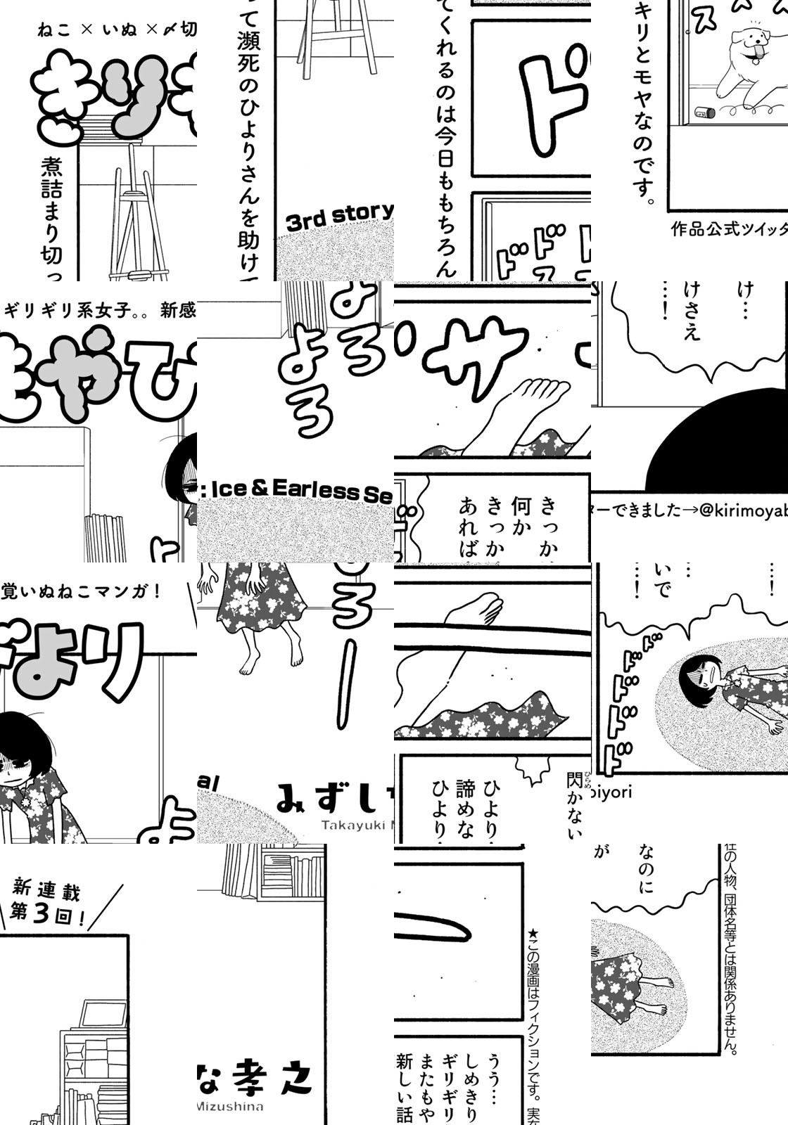 “いぬとねこと暮らしていたら、今回もなんとか絵本が描けました!”。『いとしのムーコ』のみずしな孝之が描く、新感覚いぬねこ漫画。いつもしめきりに追われている絵本作家のひよりさんと、賢げなねこのキリちゃんとでっかいいぬのモヤくんの、きりもやぬくぬく生活はじまります。