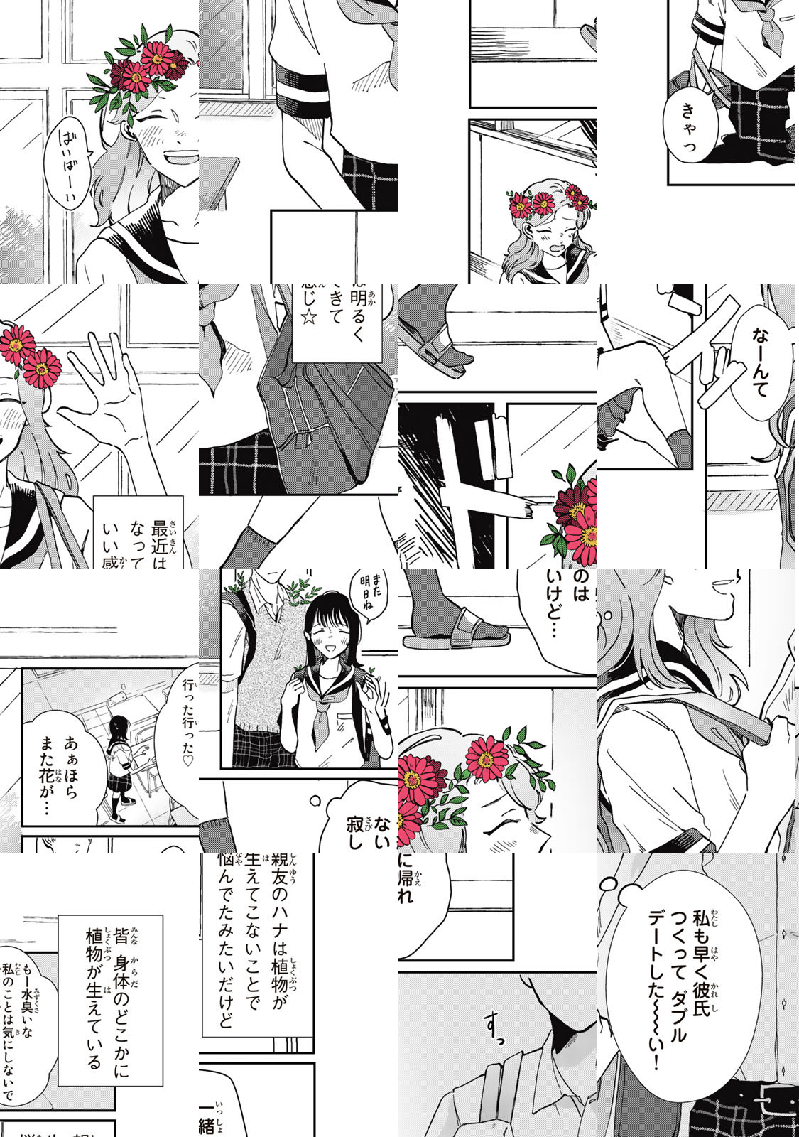 人間はみな、体のどこかから植物が生えている世界。しかし主人公の少女・ハナは“ある出来事”がきっかけで植物が生えなくなってしまっていた。そんな時、席替えで隣の席になった男の子から告白され、彩りのなかった彼女の日常は、少しずつ変わっていく。Twitterで累計37万いいねを得た「生えてこない女の子の話」をはじめ、それぞれの恋模様を植物の鮮やかな彩りで描く、切なくも美しい恋の物語。それぞれのその後を描いた描き下ろしエピソードも収録!Twitter掲載時をそのままに、豪華フルカラーコミックスにて刊行!