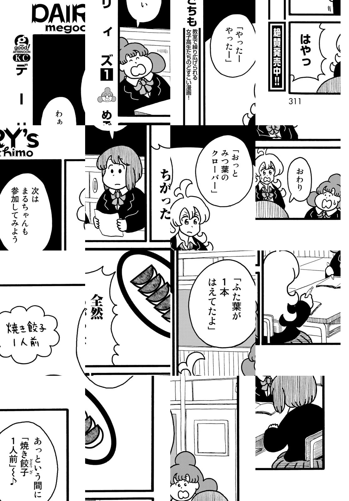 とある高校の教室の隅っこでちょっぴり変な女子高生が全力で何かに取り組むお話。教室で餃子を焼いたり、コーヒー豆を挽いたり。時には〝おでん〟たちの葛藤を妄想したり…。ゆるく描かれた3人の女子高生が教室の隅で織りなすシュールギャグ漫画!デフォルメされた可愛らしいキャラクターが織りなす日常の中に突然登場する写実的な絵柄がクセになります。