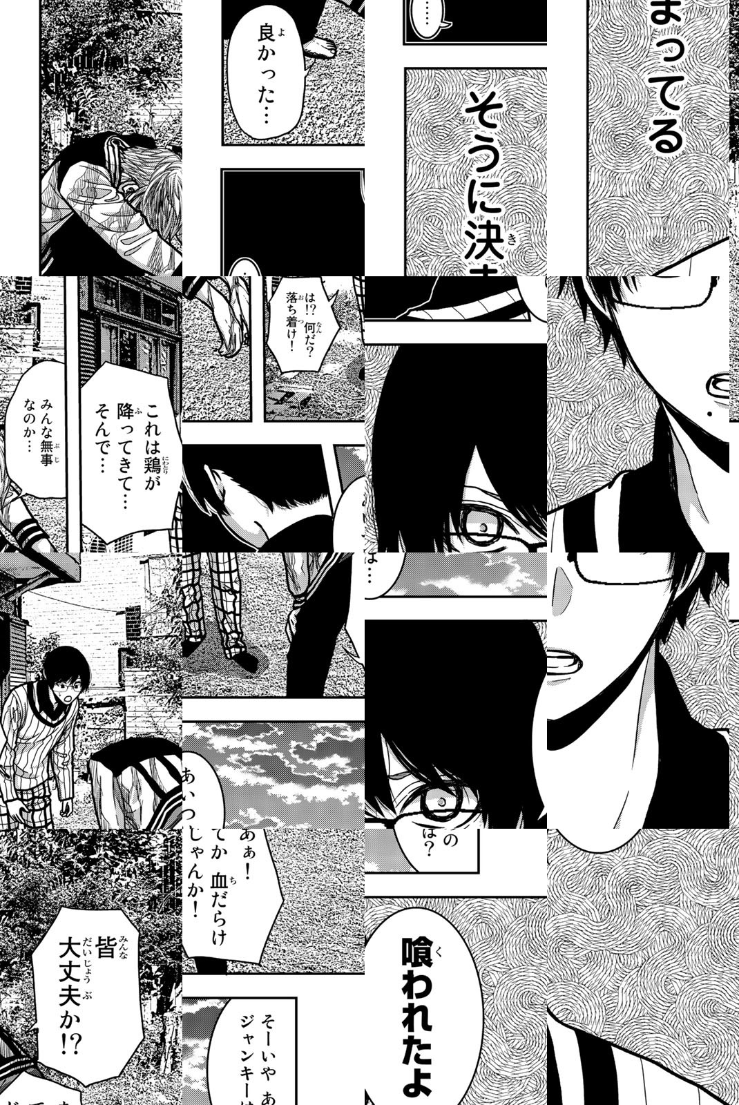 自分を捨てた父、私利私欲にまみれた施設園長など、大人の全てにウンザリしている児童養護施設の最年長・猿児 悠。そんな彼の夢は、施設を買い取り、みんなと幸せに暮らすこと。その目標に向かい就職を決め、迎えた高校卒業式。だがその日から世界は一変、大人達が巨大ニワトリに姿を変え、子供達を襲い始めたのだ! 凶暴で残酷なニワトリに立ち向かう手段は!? 逃げ出す方法は!? 自分たちで見つけるしかない世界で、悠は子供達を、夢を守り抜けるのか!? 究極のパニックホラー、登場!!