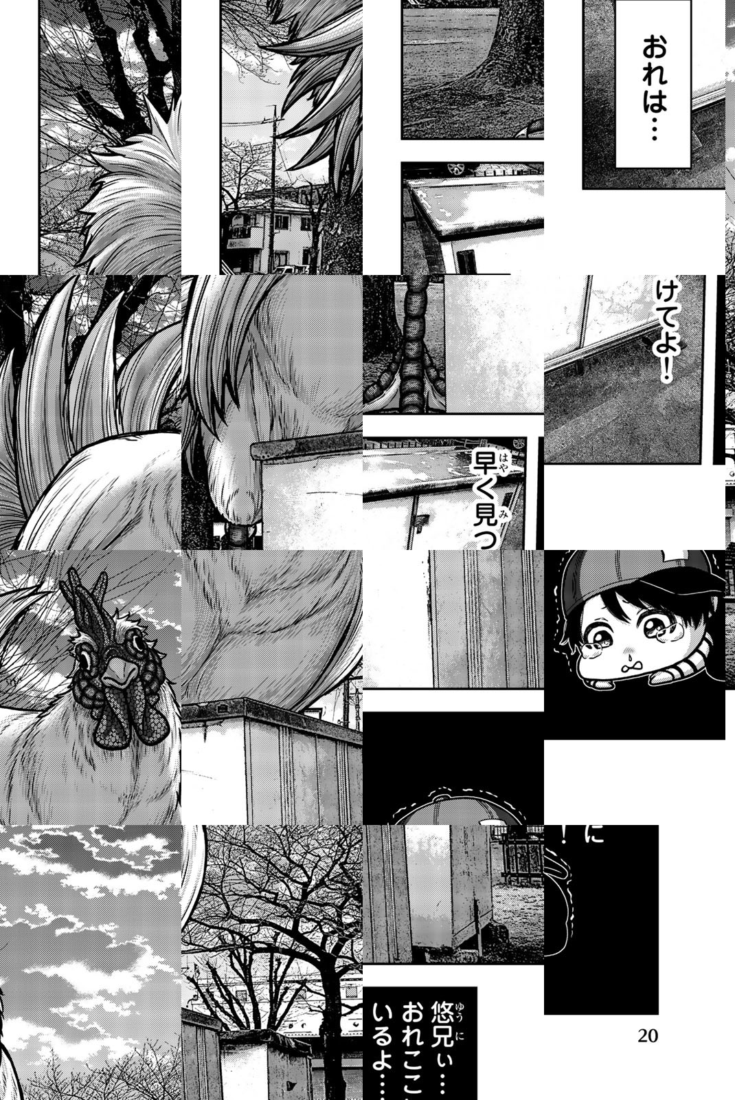 自分を捨てた父、私利私欲にまみれた施設園長など、大人の全てにウンザリしている児童養護施設の最年長・猿児 悠。そんな彼の夢は、施設を買い取り、みんなと幸せに暮らすこと。その目標に向かい就職を決め、迎えた高校卒業式。だがその日から世界は一変、大人達が巨大ニワトリに姿を変え、子供達を襲い始めたのだ! 凶暴で残酷なニワトリに立ち向かう手段は!? 逃げ出す方法は!? 自分たちで見つけるしかない世界で、悠は子供達を、夢を守り抜けるのか!? 究極のパニックホラー、登場!!