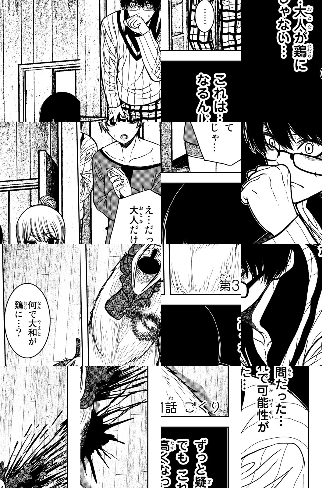 自分を捨てた父、私利私欲にまみれた施設園長など、大人の全てにウンザリしている児童養護施設の最年長・猿児 悠。そんな彼の夢は、施設を買い取り、みんなと幸せに暮らすこと。その目標に向かい就職を決め、迎えた高校卒業式。だがその日から世界は一変、大人達が巨大ニワトリに姿を変え、子供達を襲い始めたのだ! 凶暴で残酷なニワトリに立ち向かう手段は!? 逃げ出す方法は!? 自分たちで見つけるしかない世界で、悠は子供達を、夢を守り抜けるのか!? 究極のパニックホラー、登場!!