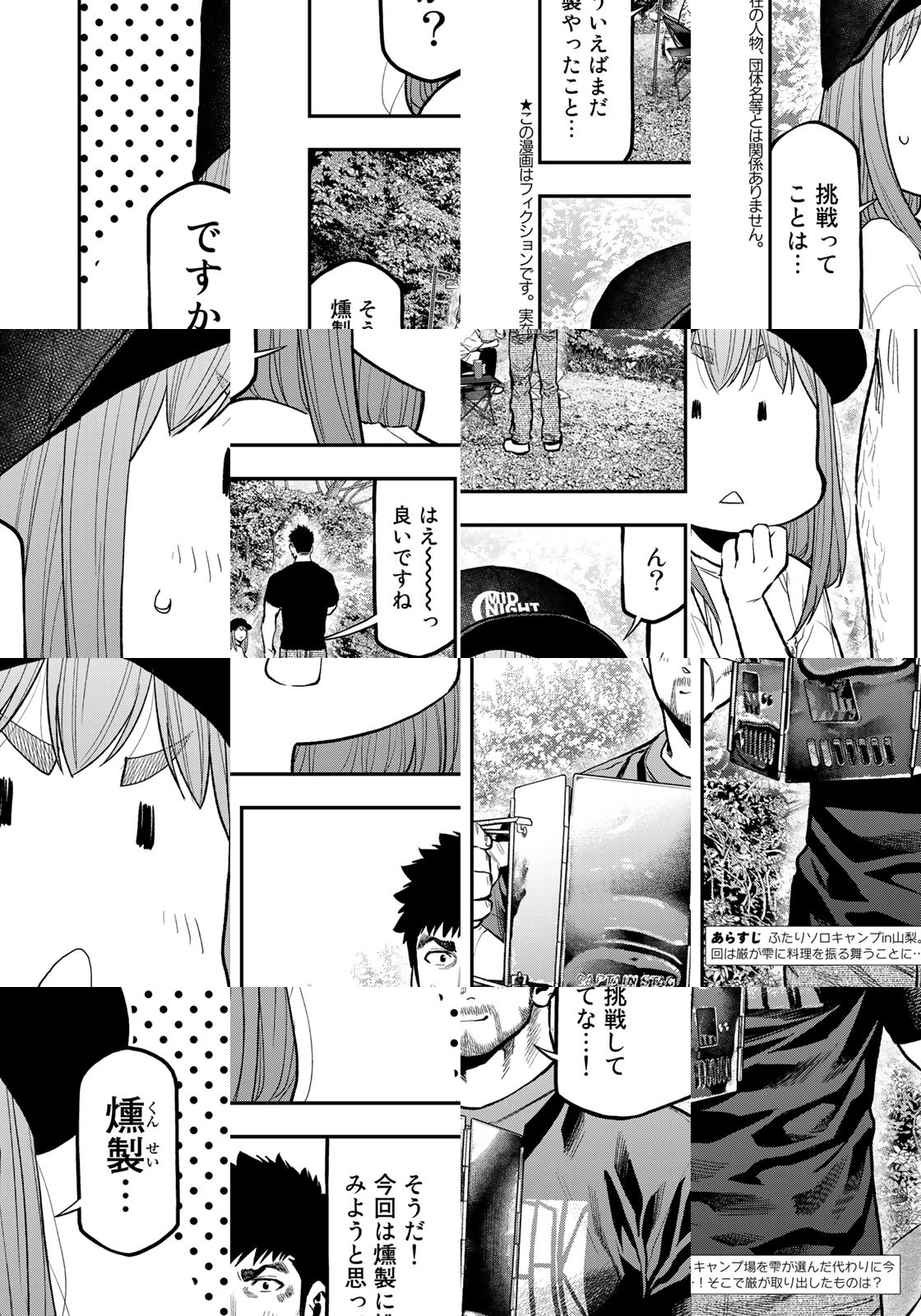 オレは樹乃倉厳。34歳。趣味はキャンプ。独りで野営する生粋のソロキャンパー。車はいらない。電車を乗り継ぎ、最後はバスで山に入る。自然を愛してる、火を木を水を土を。それと同等に孤独な自分の生き方を愛している―ーー。…な俺が! ひょんなことから草野雫20歳という小娘に出会い、ふたりでソロキャンプをするはめに!