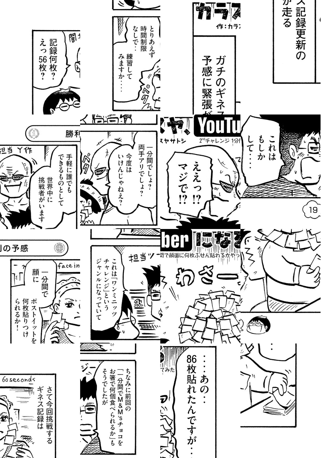 カラスヤサトシ、42歳(漫画家・男性・既婚)。無縁と思っていた「YouTuber」を無謀にも目指すことに! 誰でも簡単に挑める世界記録に果敢に挑戦し、その姿を動画化して世界に発信していくこの企画。二重にそびえる「世界」の壁に、カラスヤ氏はいかにして立ち向かうのか!! そして実を結ぶ日は来るのか!!