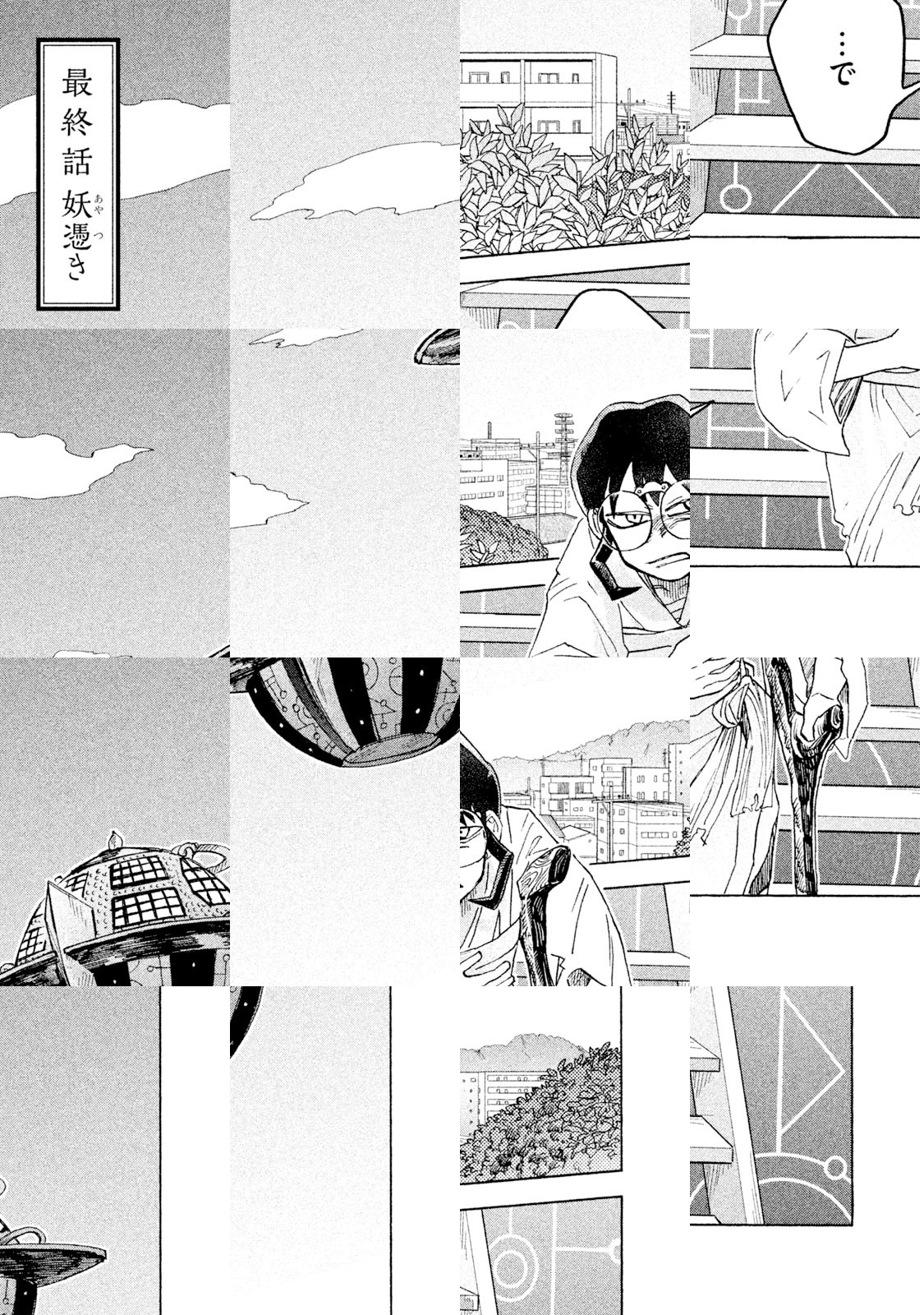 妹思いのフツーの高校生・月丘リョウ。ある日の放課後、公園でひとり手品の練習中に空から墜ちてきた「何か」が直撃! それは地域の神に雇われている妖(あやかし)自警団の乗り物。町の平和を守るはずが大事故を起こしてしまい、高校生達の命を救う(過失を隠す?)ために同化することに…。 新しい命とともに異能力を得た4人(リョウ・ウダカ・マコ・ゴウ)は自警の業務も引き継ぐことになったのだった…。