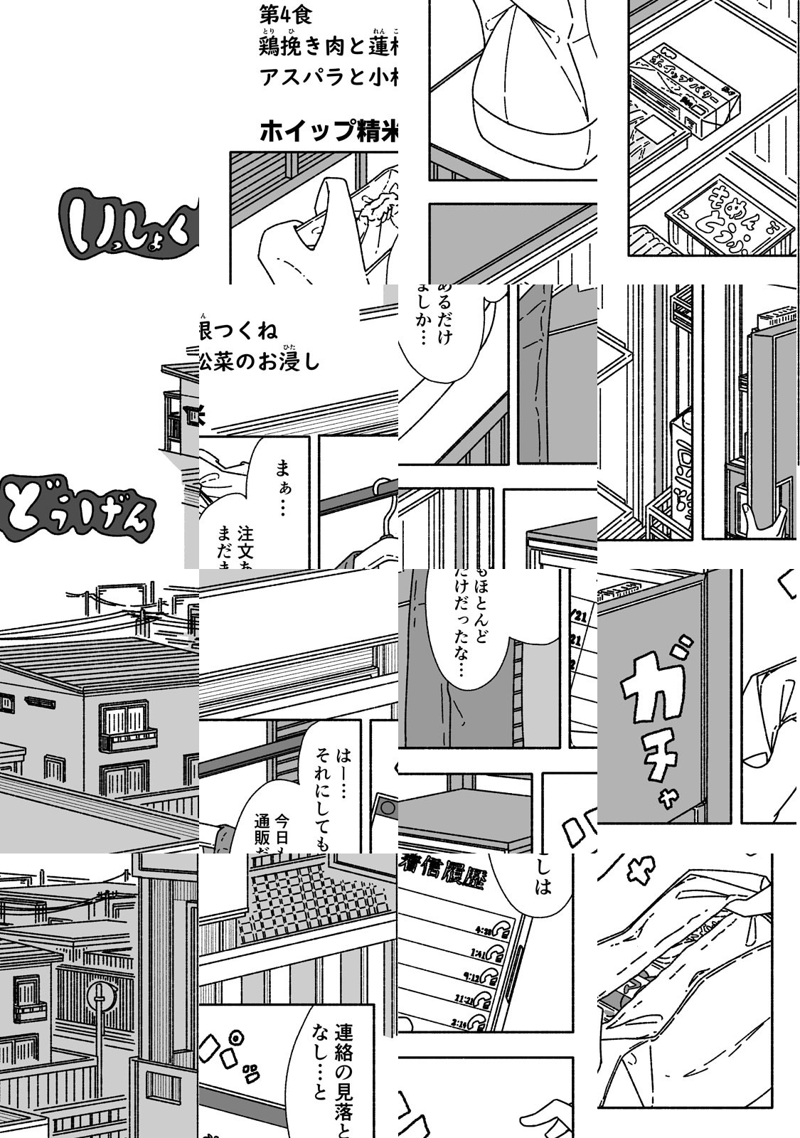 第4話 鶏挽き肉と蓮根つくねアスパラと小松菜のお浸し