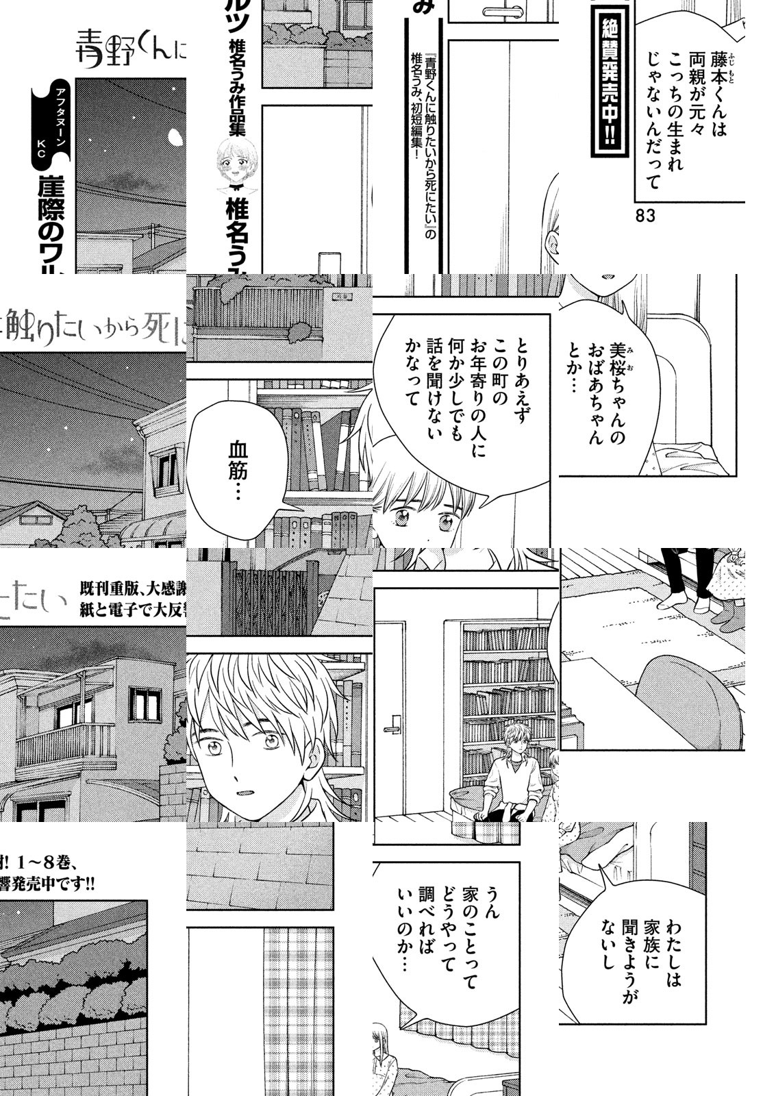 君に触れるなら、死んでもいいよ。これがわたしの愛なんだ。アフタヌーン公式サイト「モアイ」掲載の1話が300000PV突破で話題! 天然少女・優里ちゃんと、その彼氏・青野くん。ごく普通のお付き合いをしていたふたりだが、ある日突然、青野くんが「いなくなって」しまう……。絶対に結ばれないし、触れ合えないふたりの、でたらめで切実すぎるラブ・ストーリー。