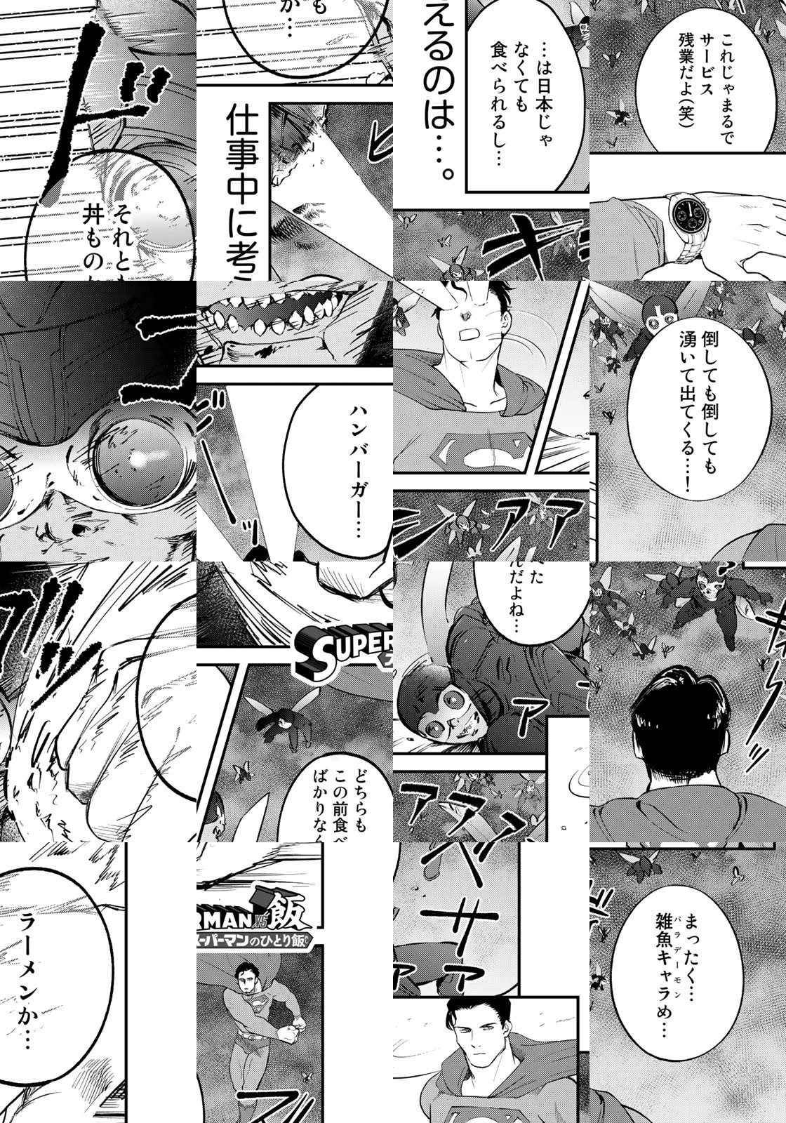 スーパーヒーローも腹は減る。地上最強の男・スーパーマンとして忙しく働く彼の毎日の楽しみ——それは日本で食べるランチ。超人的聴力で自分のお腹が鳴る音が聞こえたら、路地裏でスーツを脱ぎ捨て、日本の外食チェーンへ飛んでいく。釜飯を熱光線で温めたり、天丼の具材でジャスティスリーグを結成したり、ランチタイムのスーパーマンはマイペースでいい! DCコミックス公認のスーパーマン×グルメ漫画!