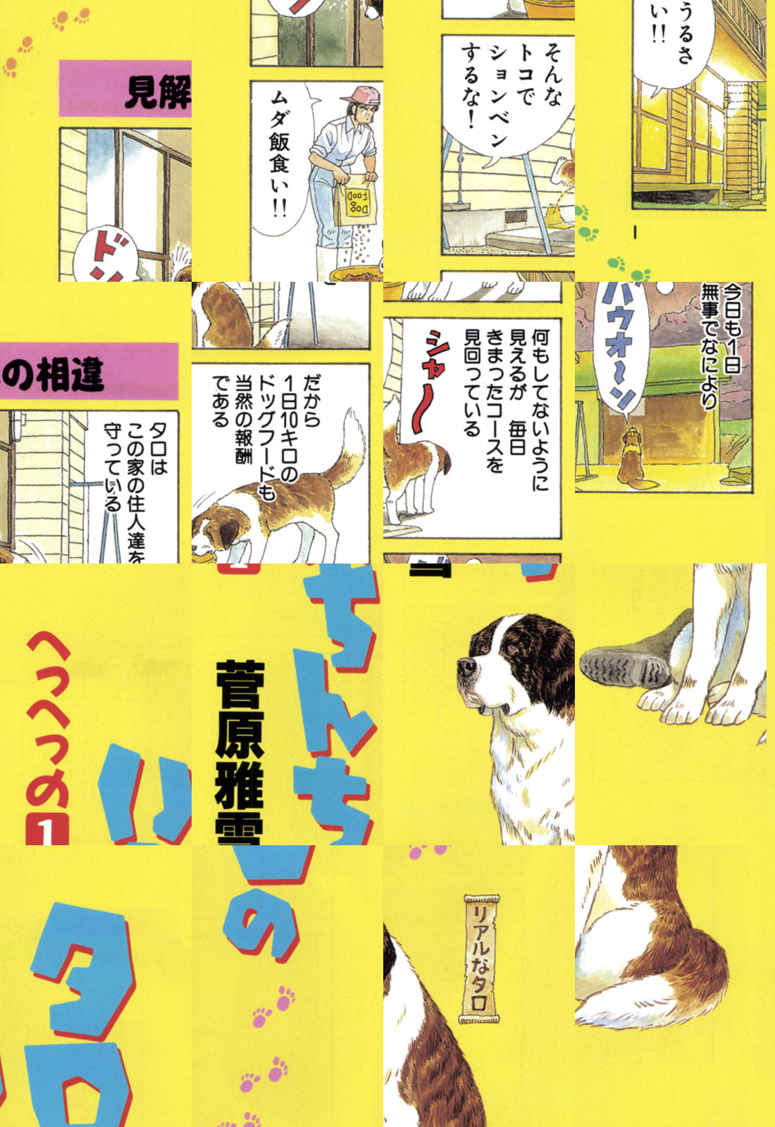 農村で暮らすセントバーナード犬・タロ。体は大きいのに、表情はいつも困り顔。子犬の時にはこの困り顔が「かわいいっ!」と評判だったのに……。タロはおっとりのんびり、それからちょっと臆病。その性格ゆえか、ついつい、みんなにもて遊ばれちゃう。飼い主の理不尽な仕打ちにグッと耐え、カラスやキツネ、タヌキに襲撃される毎日。それでも四季折々で表情を変える大自然の中、無事な一日の終わりを喜ぶタロなのだっ!!