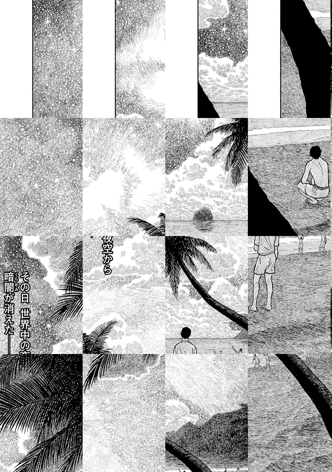 突然、世界の夜空から闇が消え、星々で塗りつぶされたようにきらめいた。札幌に住む宇宙が好きな少年・ワタルは、夢で「ガラスのピラミッド」のヴィジョンを見る。彼は虐待を受けていたが家を脱出、幼なじみの少女と共に、夢を手がかりにモエレ沼公園に向かう。公園には同じヴィジョンを見た人々が集まっていた。やがて飛来した宇宙船から、奇妙な形態の生命体が降り立ちーー。
