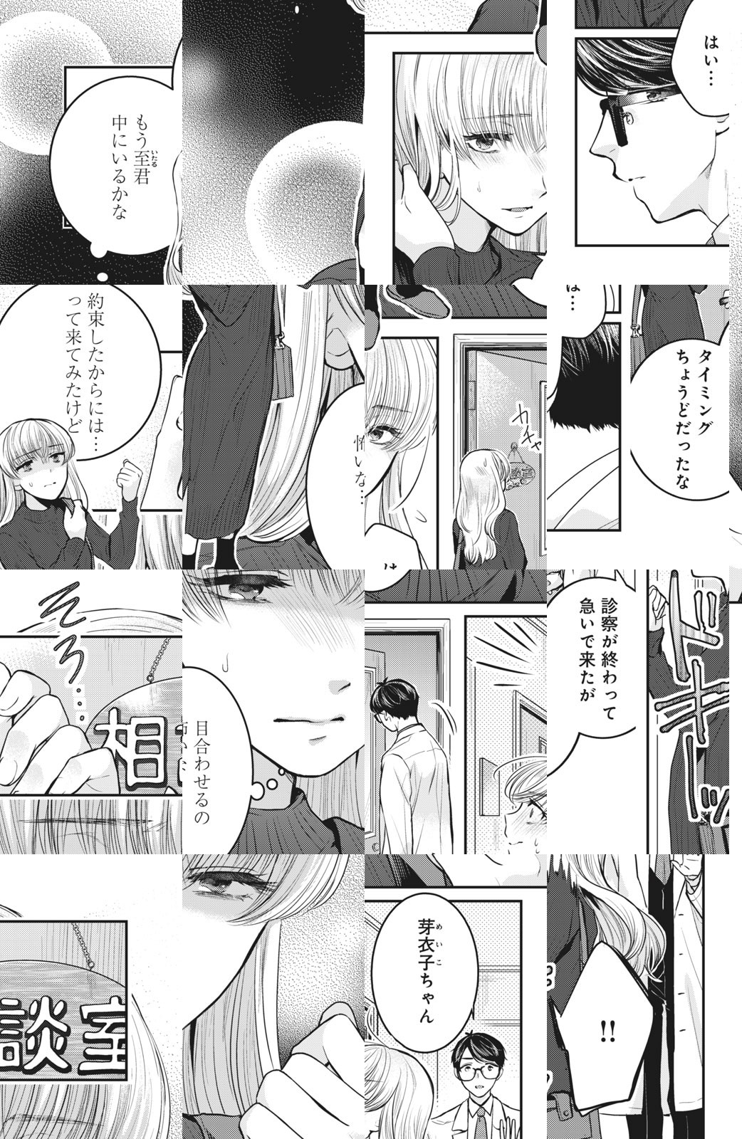 不器用医師×気にしすぎ女子、ヒミツのカウンセリング始めます!不眠の相談のため、かかりつけクリニックに通うOLの芽衣子は、ある日知らない医師と部屋に閉じ込められてしまう。相手はよく見たら、幼馴染の至くん!?しかも閉じ込められている間にキスしちゃって――!? お互いの悩みを解決するため、土曜午後の診察室は、お題をクリアするまで出られない部屋に変わる!