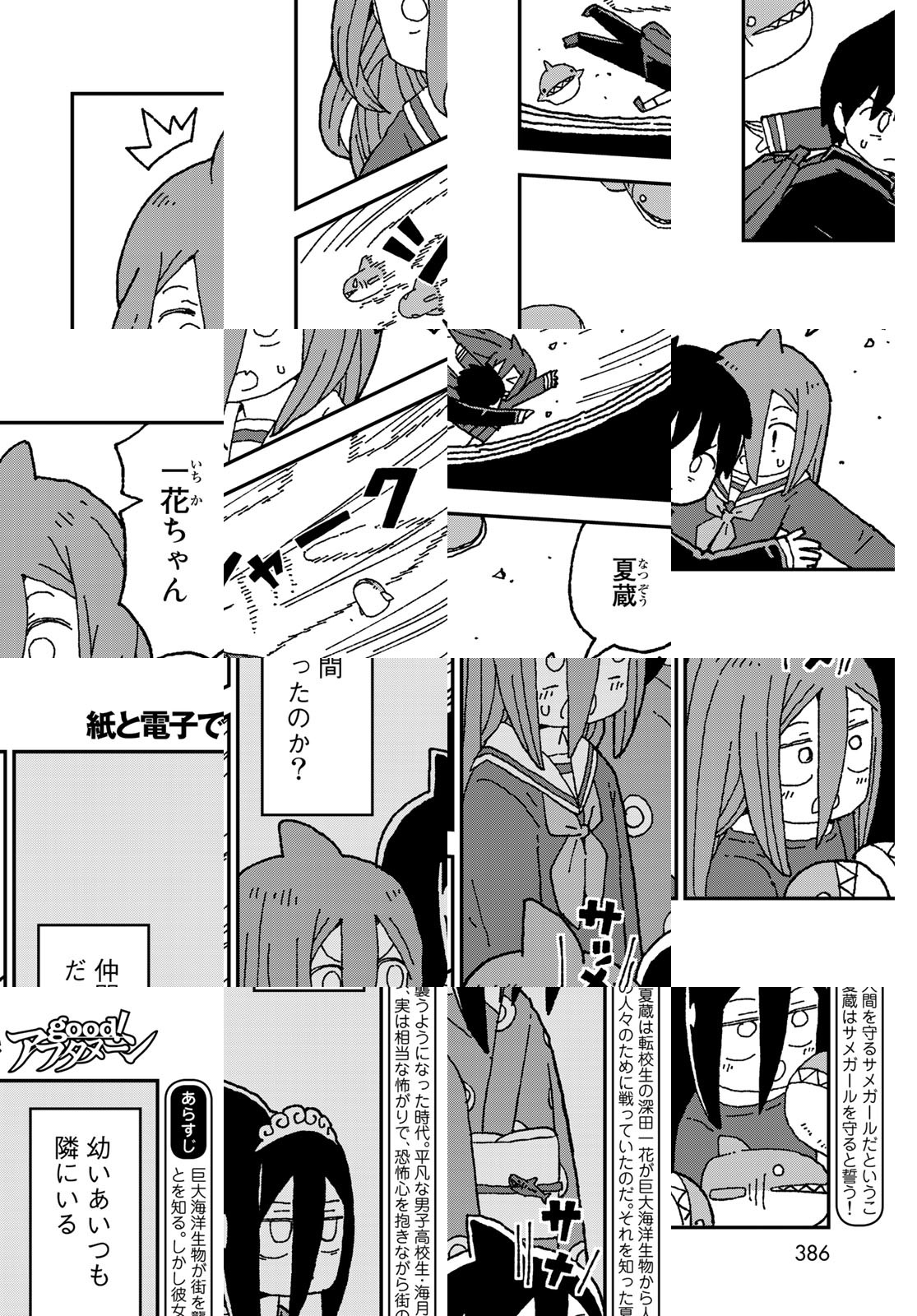 巨大海洋生物が街を襲うようになった時代。平凡な男子高校生・海月夏蔵は転校生の深田一花が巨大海洋生物から人間を守るサメガールだということを知る。しかし彼女、実は相当な怖がりで恐怖心を抱きながら街の人々のために戦っていたのだ。それを知った夏蔵は彼女を守ることを誓う!