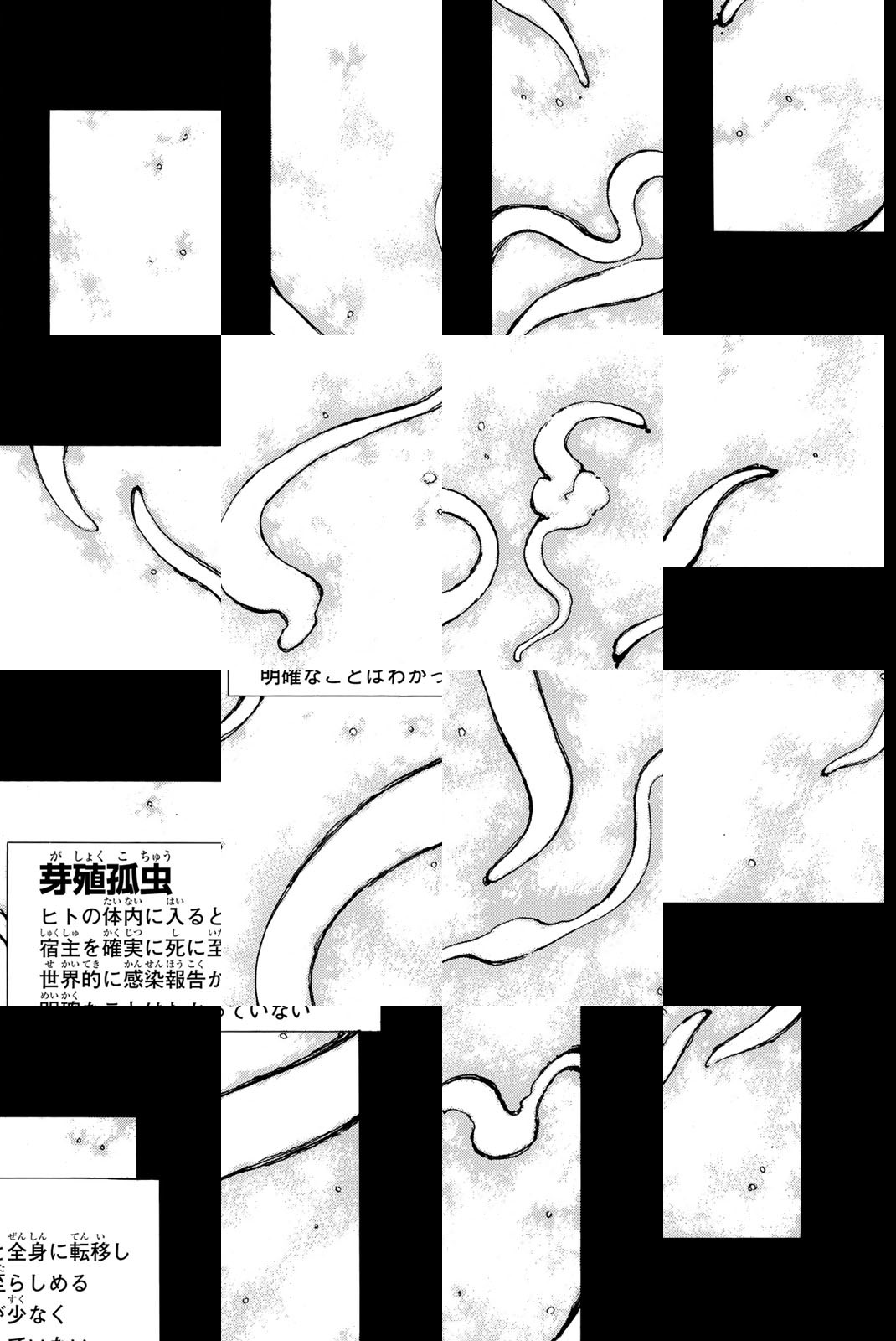 実在する虫・芽殖孤虫。それは、我々の身体に巣食う人体寄生虫。発症すると幼虫が皮下で分裂して増殖し続け、宿主となる人間は死に至る。治療法はない……。芽殖孤虫により母を喪った少年・鉄郎と妹の奈々は、父を頼り八女島に移住する。しかし、そこで彼らを待ち受けていたのは、怪しげな島民と、いつの間にか奈々の体内に巣食っていた謎の人体寄生虫だった。